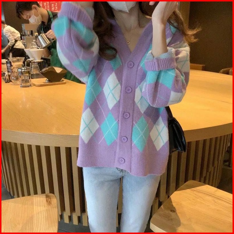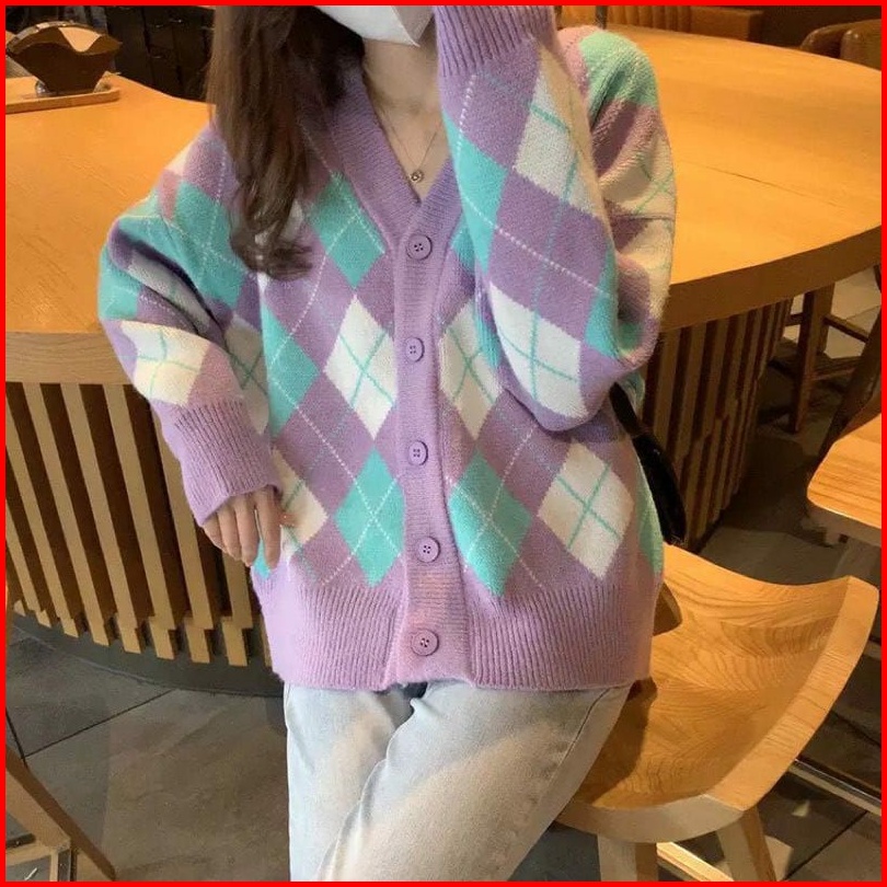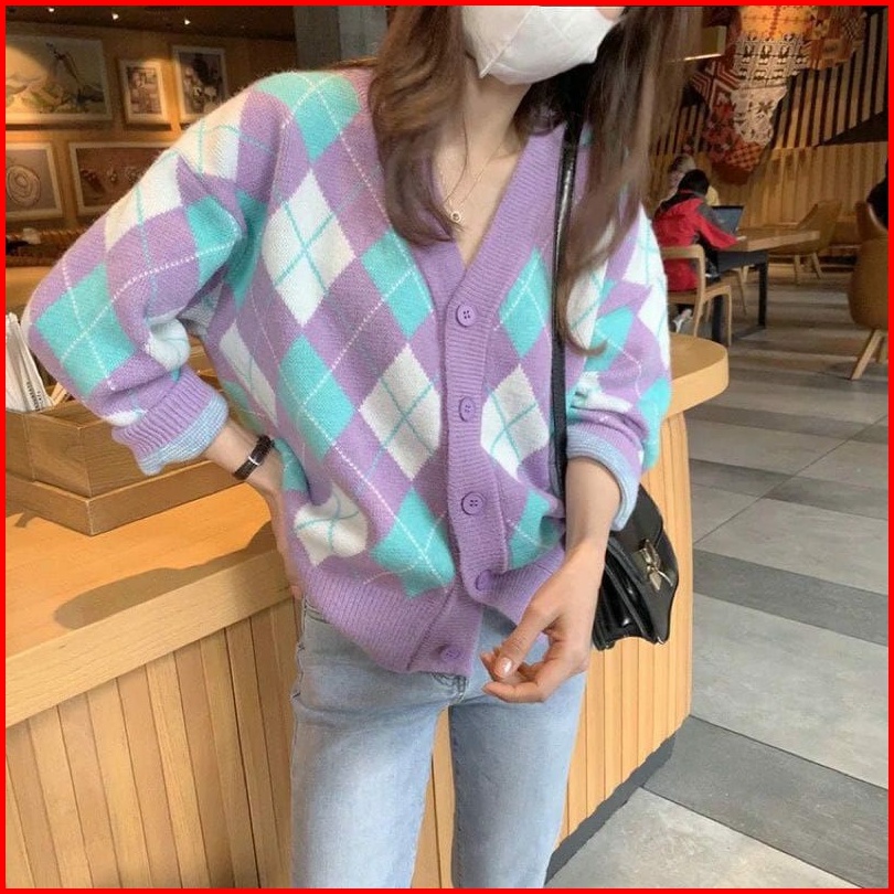 Sullivan Cardigan Restock Lilac Argyle Rajut Cardy Sullivan Lilac Argyle