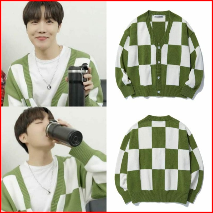 Cardigan Bts Restock Jhope Beomgyu Motif Kotak-kotak Cardi Bts Korean Stylish