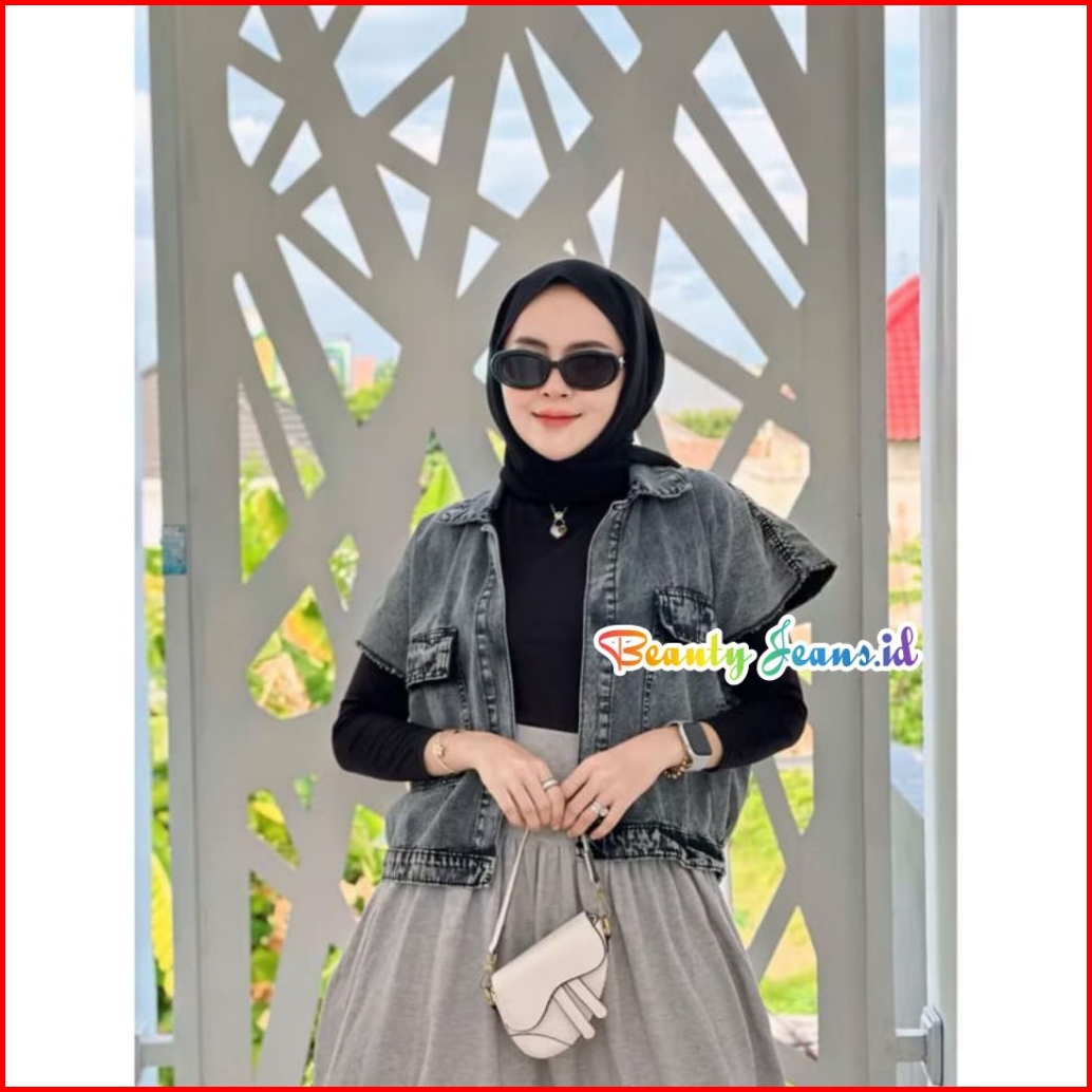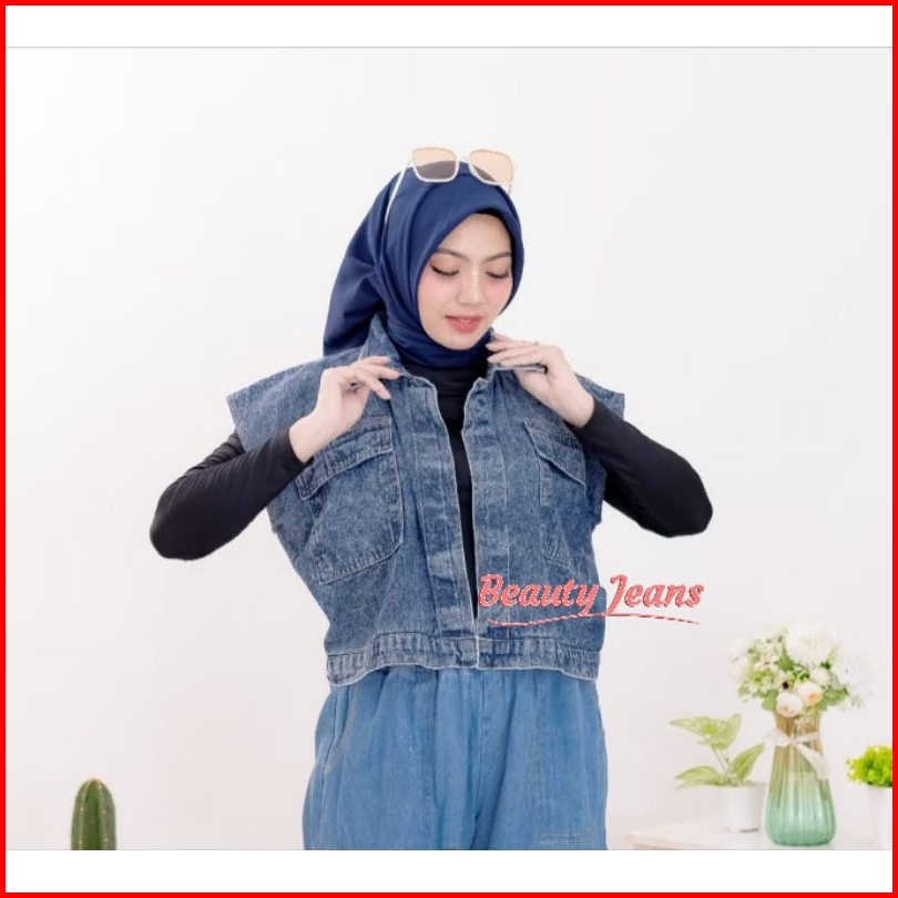Jaket Rompi Jeans Cassandra Oversize Jacket Denim Wanita Tanpa Lengan Outer Blazer Kekinian Ld 120 Jumbo Crop Rompi Kore