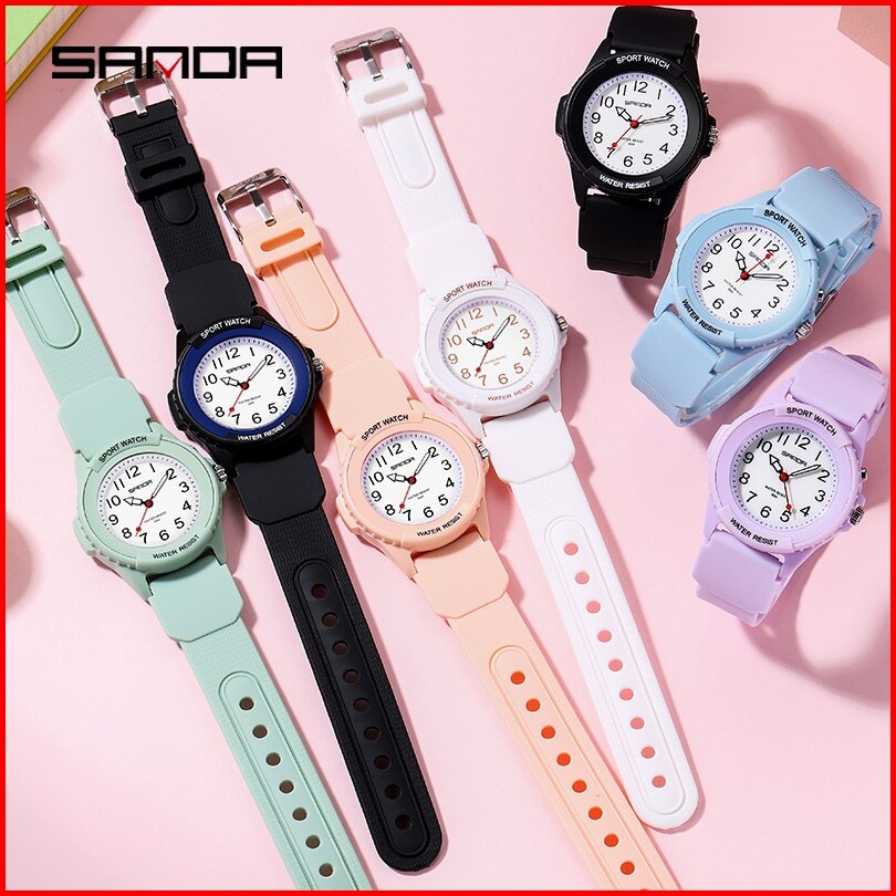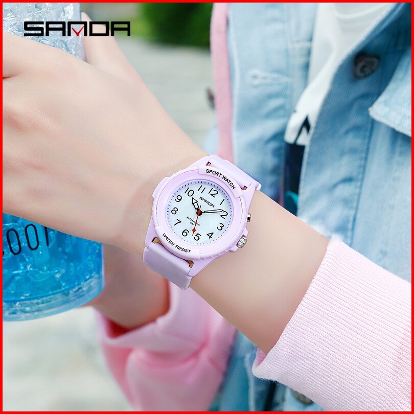 Sanda 6018 Jam Tangan Wanita Analog Tali Rubber Luminous Anti Air
