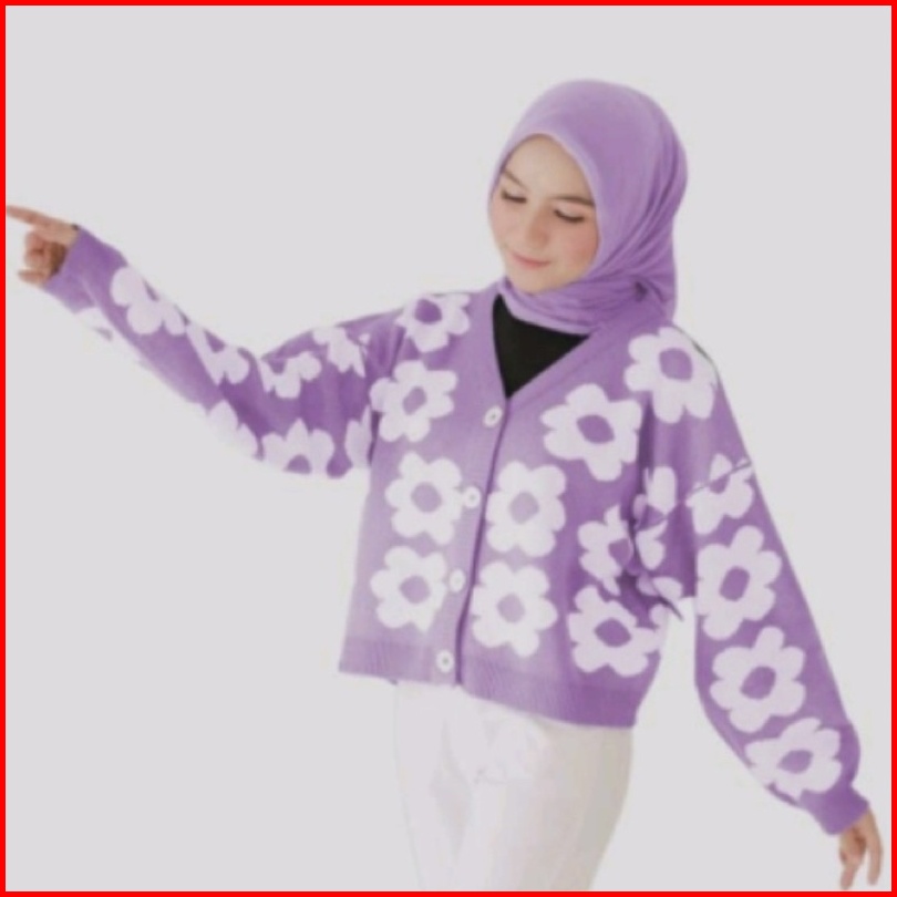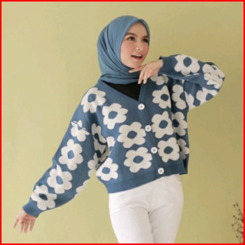 Urban Flower Knit Cardigan Wanita Rajut Korean Minimalis