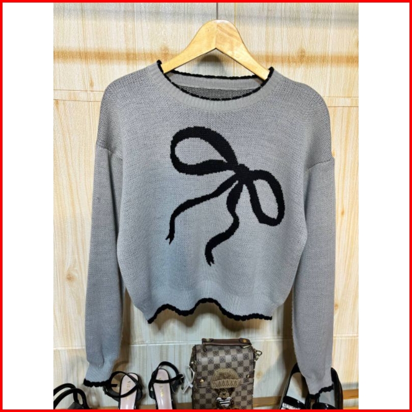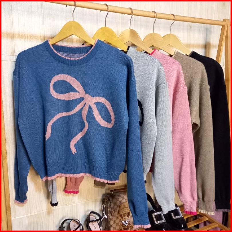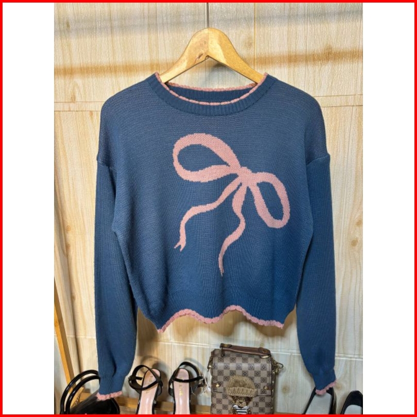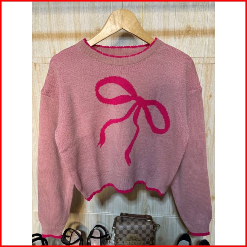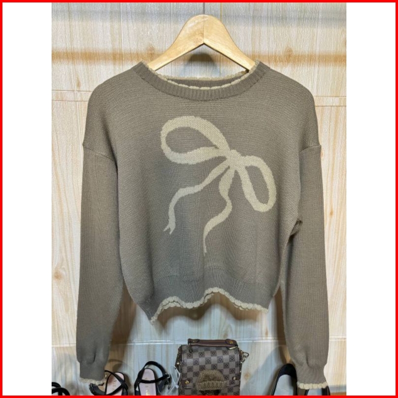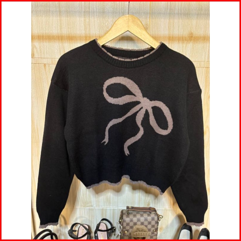 Blouse Ribbon Crop Atasan Rajut Wanita Korean Style Keren