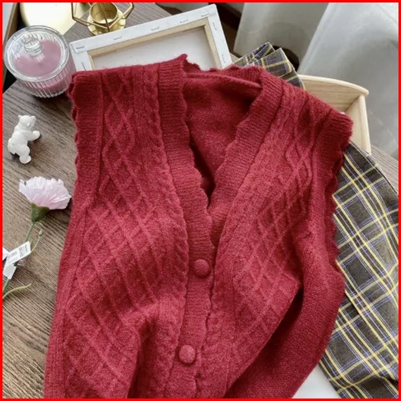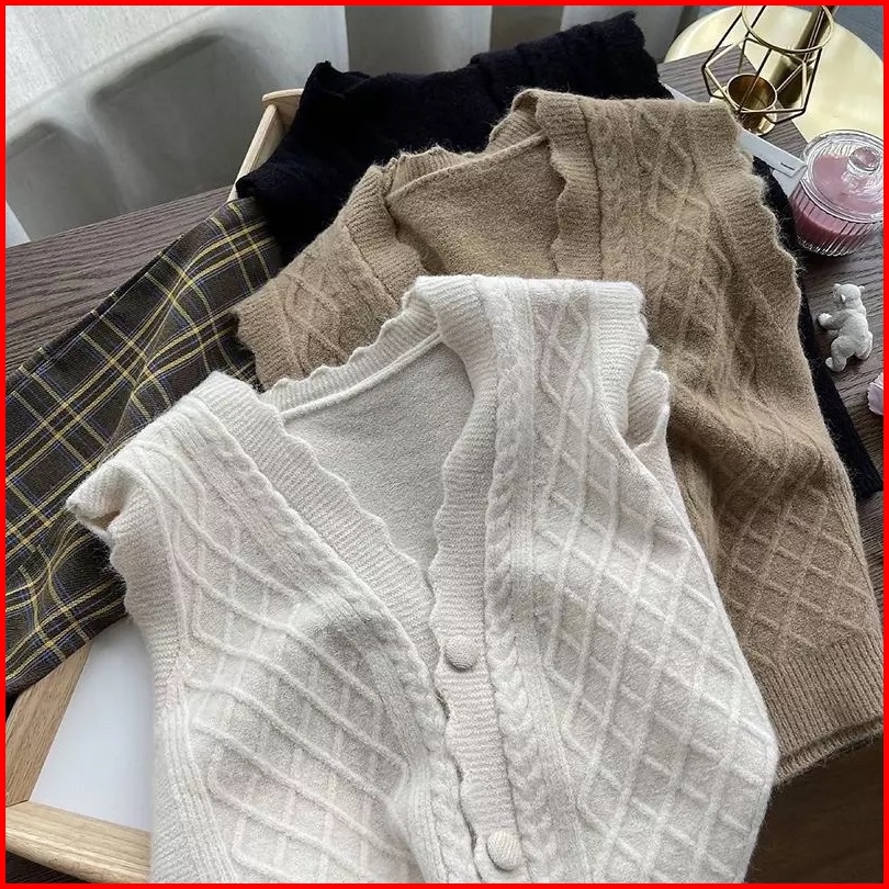 Premium Vest Knit Button Impor Rompi Rajut Premium