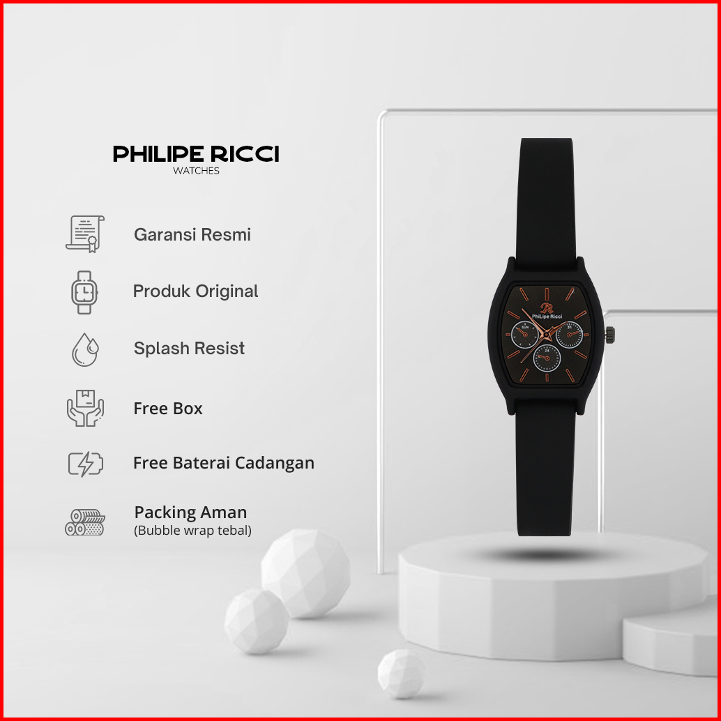 Philipe Ricci Jam Tangan Wanita Kecil Original Analog Strap Tali Karet Rubber Quartz Model Terbaru Diameter Kotak Kekini