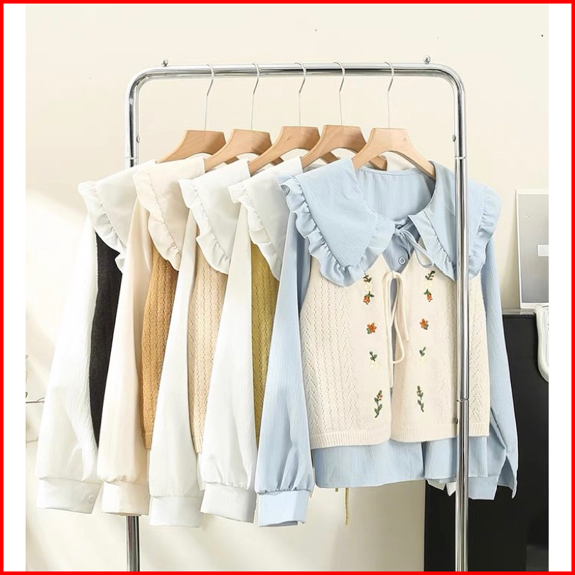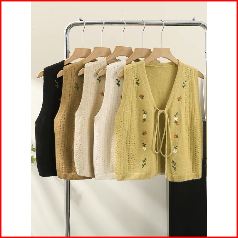 Atasan Rajut Wanita Lady Set Rompi Vest Rajut Rompi Bunga Kaos Import Wanita Set Vest Korea