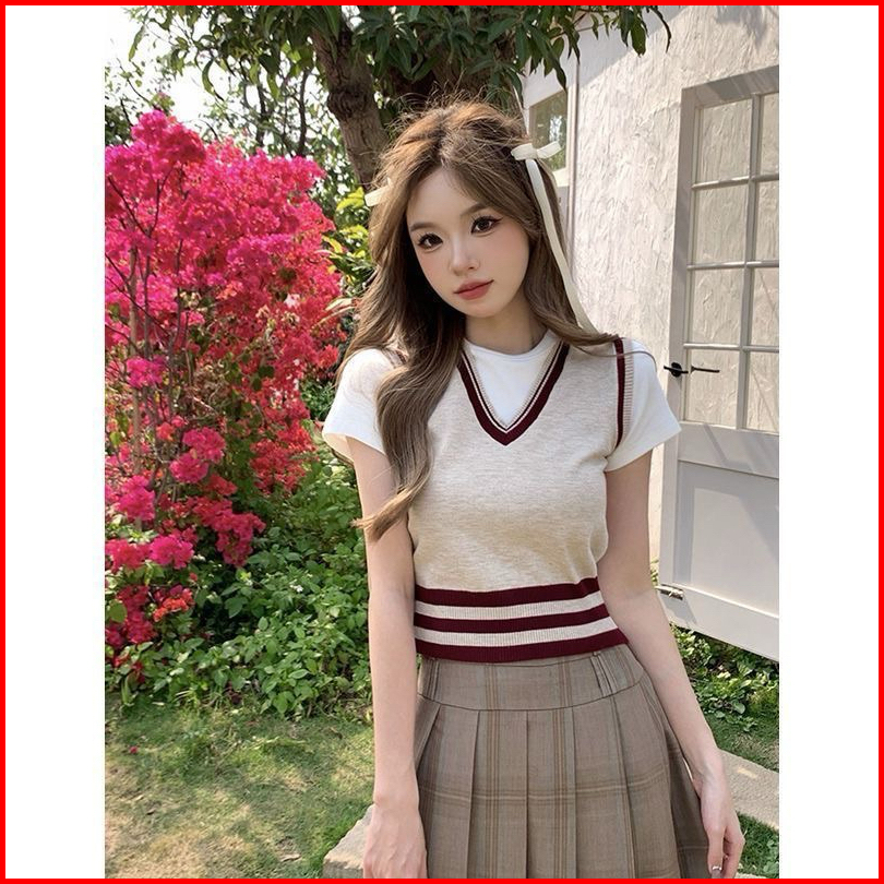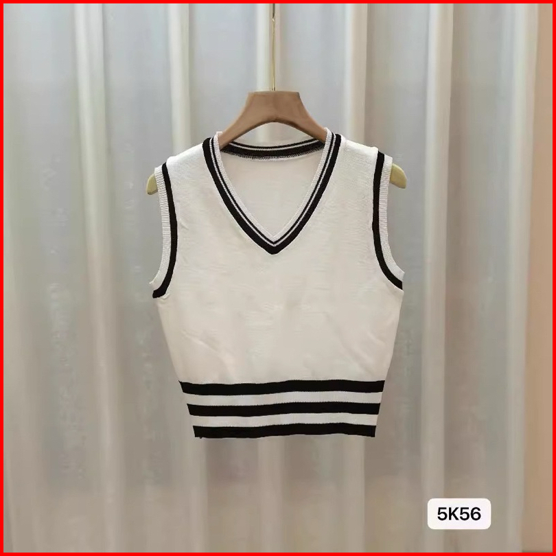 Vest Rompi Wanita V-neck - Vest Rajut Wanita Rompi Aja Garis - Tangtop Rajut Terbaru