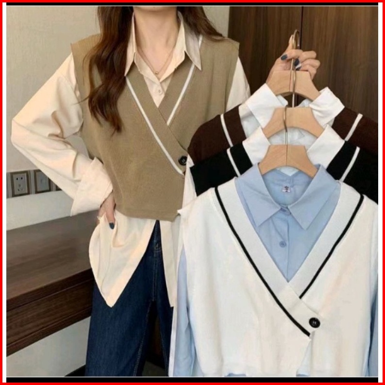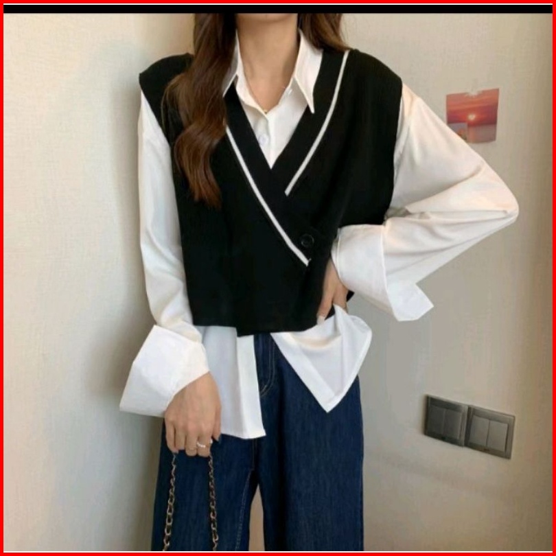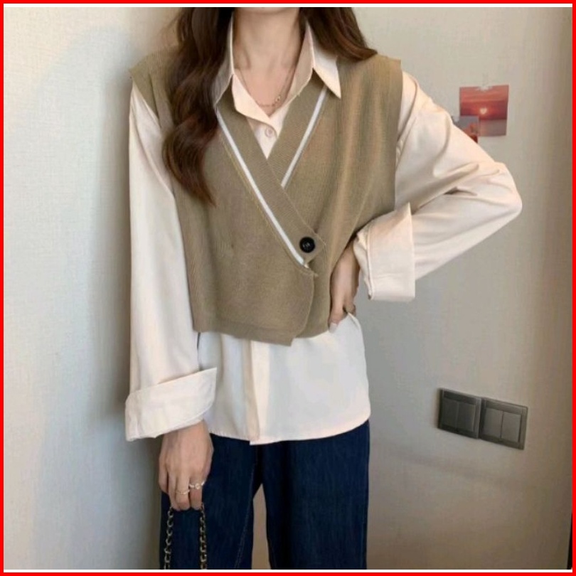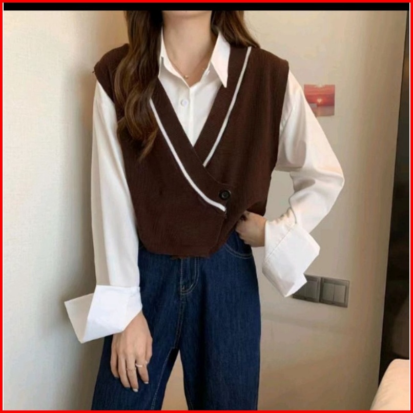 Vest Crop Rompi Rajut Shila Kancing Samping