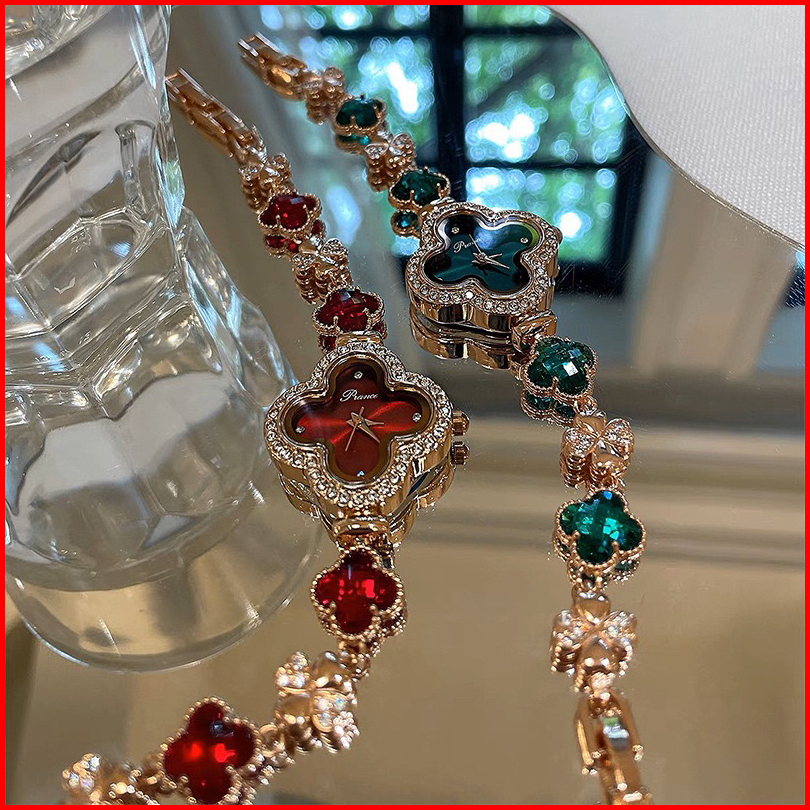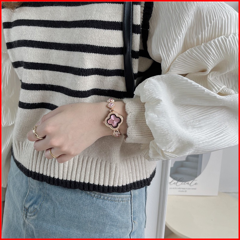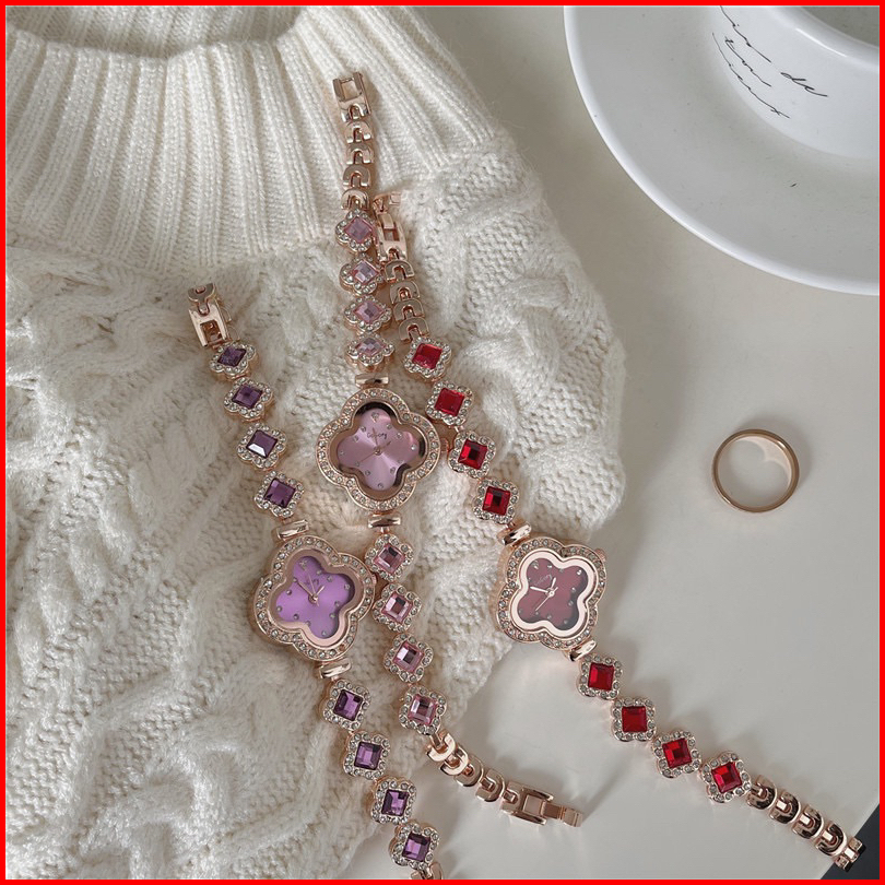 Jam Tangan Wanita Rantai Gelang Lucky Clover Warna Jam Analog Jewerly Mewah Ca082