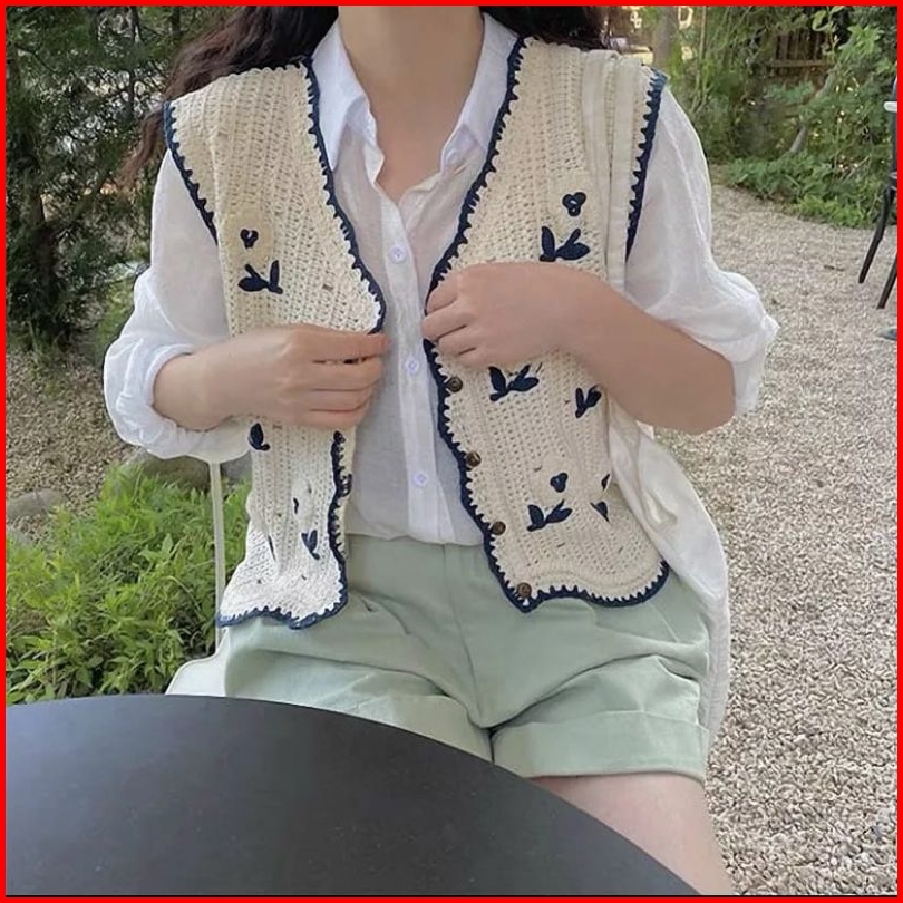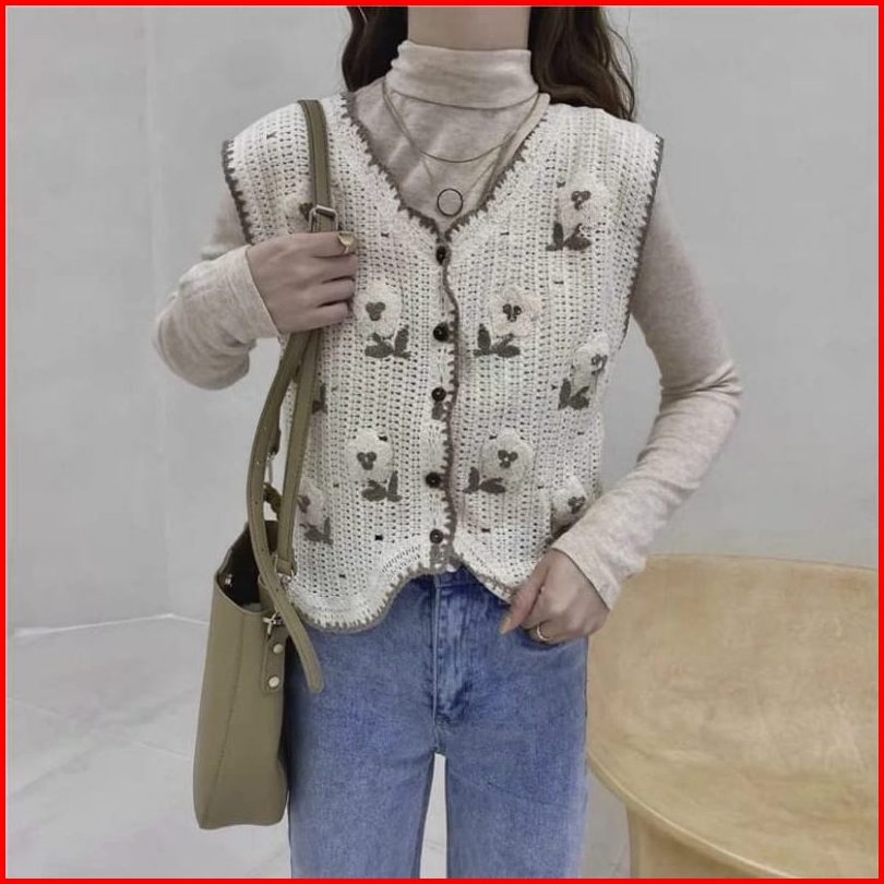 Atasan Blouse Vest Rajut Wanita Dengan Gaya Premium Korean Style Cocok Untuk Gaya Kasual Maupun Forma