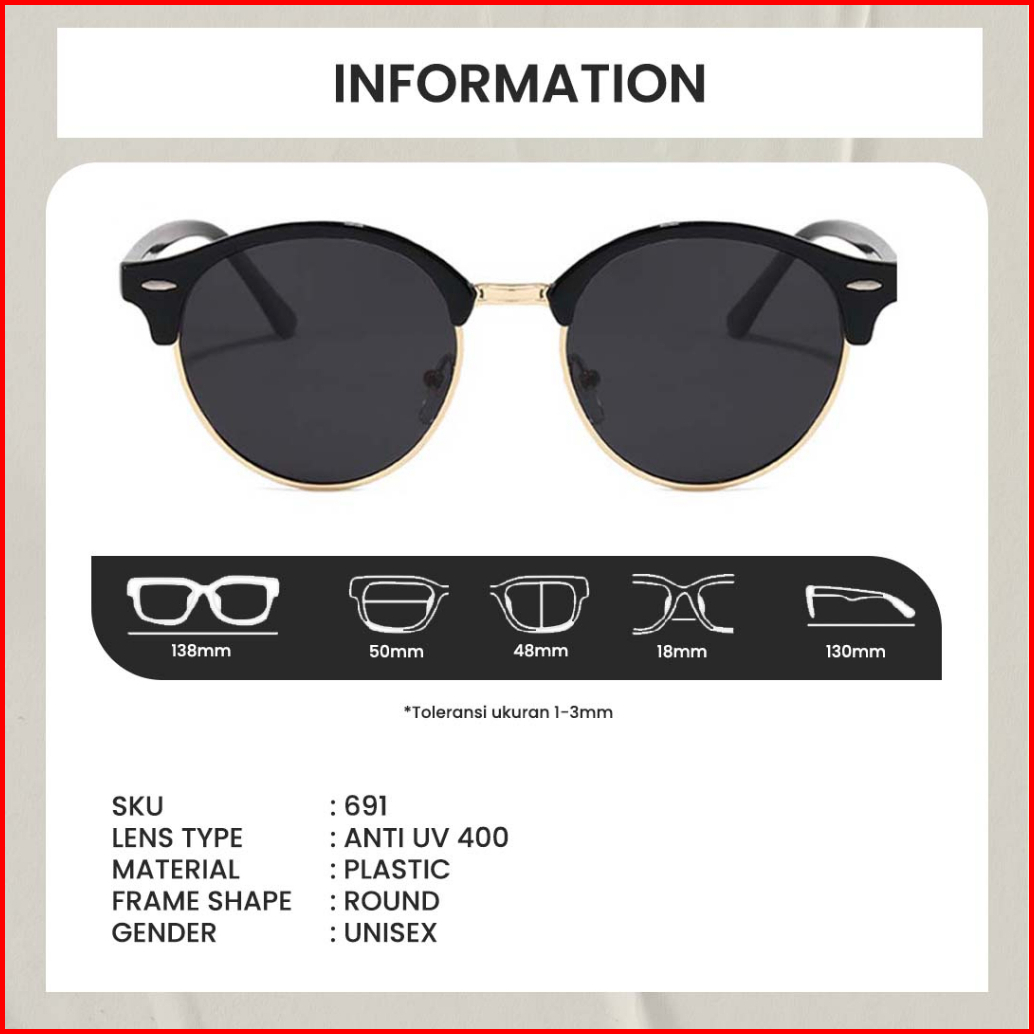 Berrybarton - Kacamata Hitam Bulat Plastic Sunglasses Anti Uv400 Pria Wanita 691