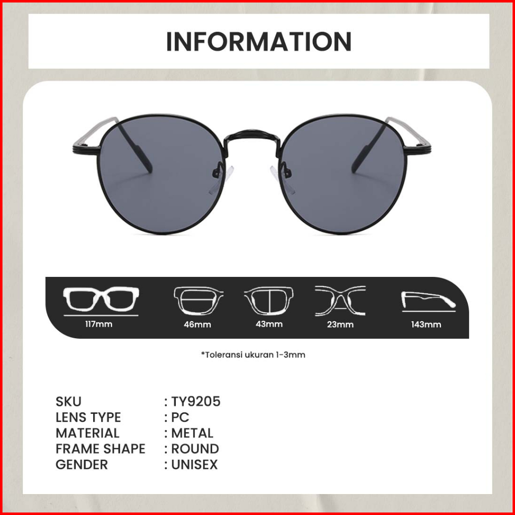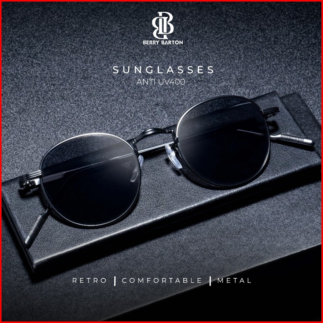 Berrybarton - Kacamata Hitam Anti Uv400 Sunglasses Outdoor Kacamata Bulat Metal Pria Wanita 9205