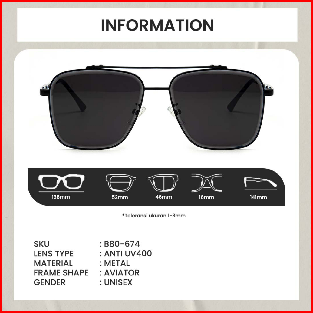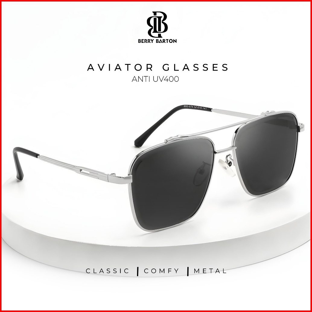 Berrybarton - Kacamata Hitam Anti Uv400 Sunglasses Anti Silau Kacamata Aviator Metal Pria Wanita 80-674