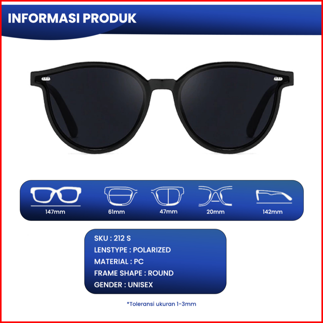Iooi Eyewear - Kacamata Hitam Oval Pc Uv Protection Fashion Retro Pria Wanita 212 S
