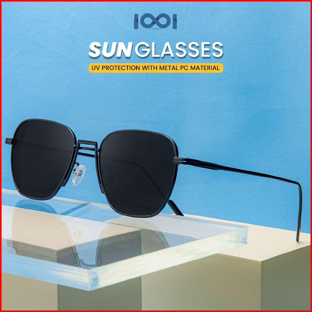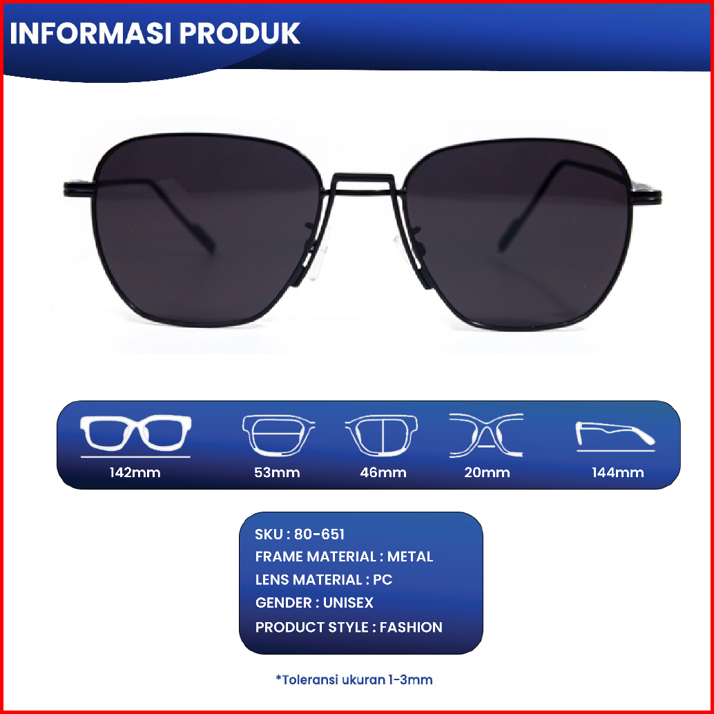 Iooi Eyewear - Kacamata Hitam Kotak Metal Pc Casual Uv Protection Pria Wanita 80-651