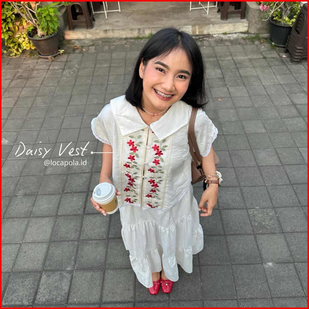 Locapola Daisy Vest Outer Brukat Bordir Vest Kondangan Vest Vintage Lebaran