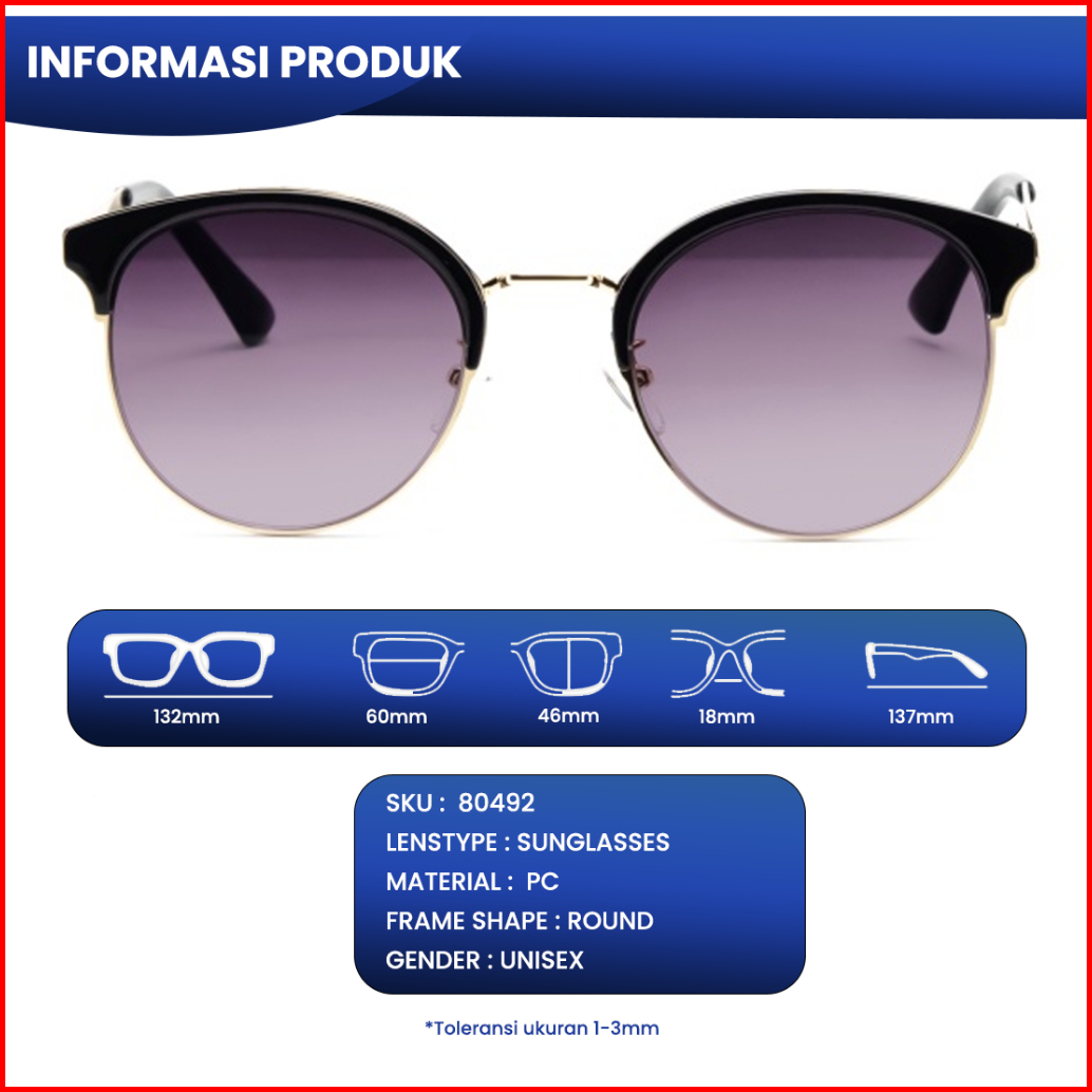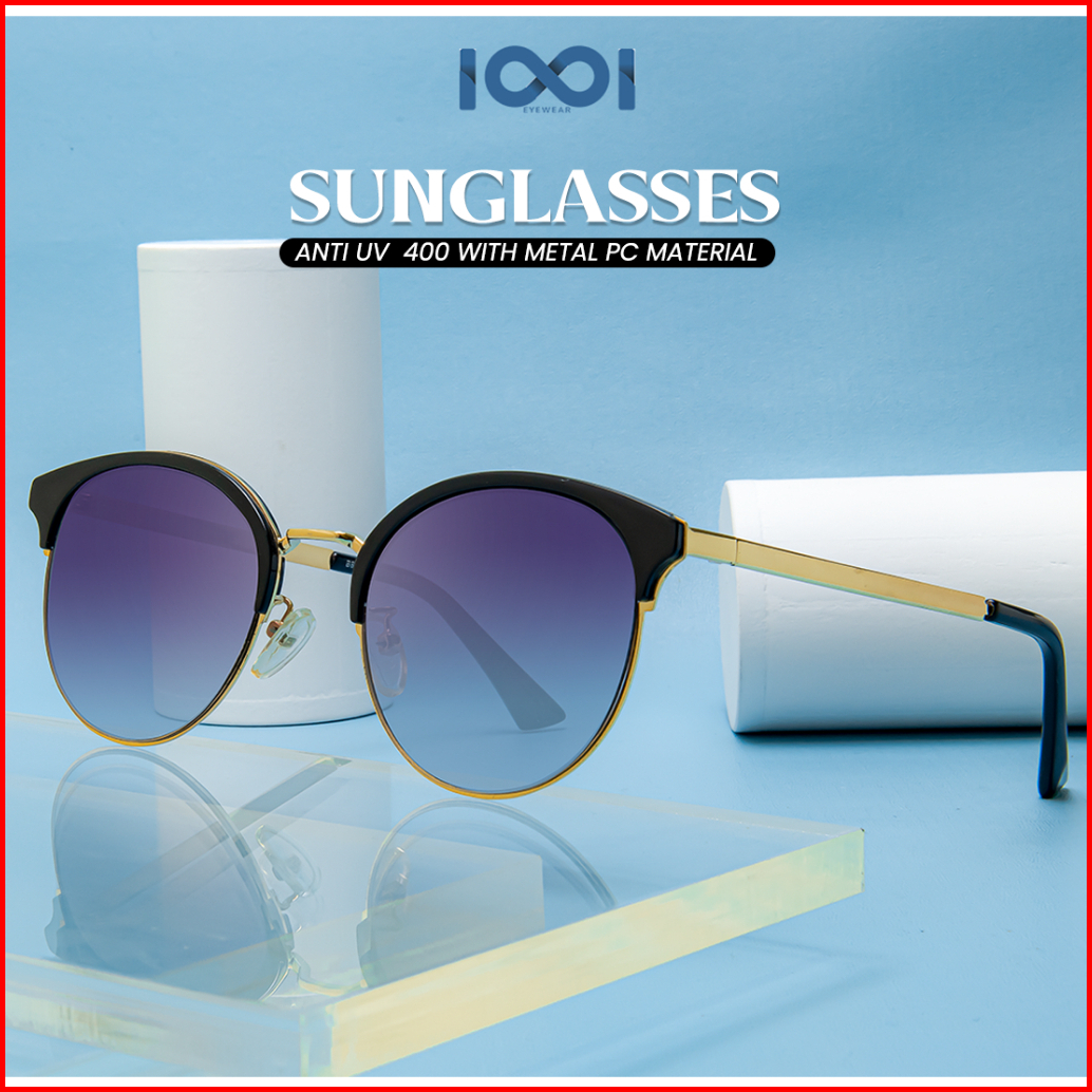Iooi Eyewear - Kacamata Hitam Bulat Classy Sunglasses Bahan Pc Anti Silau Uv400 Pria Wanita 80492