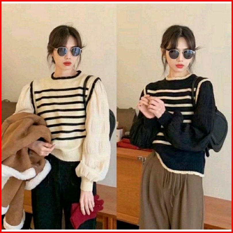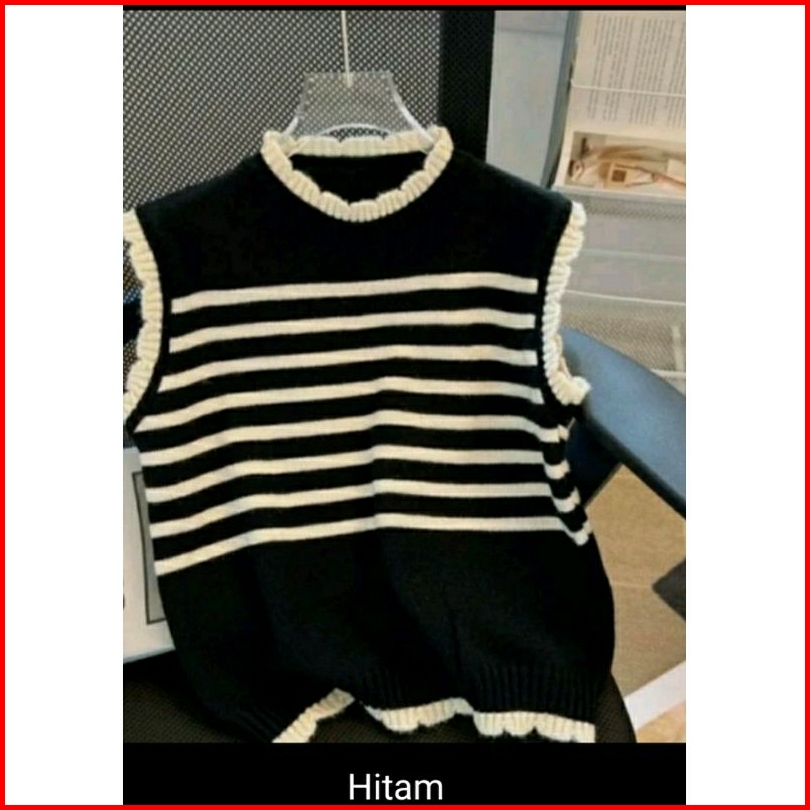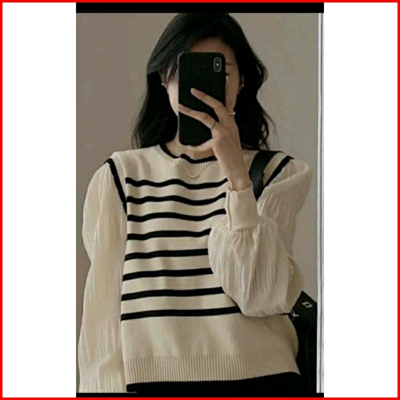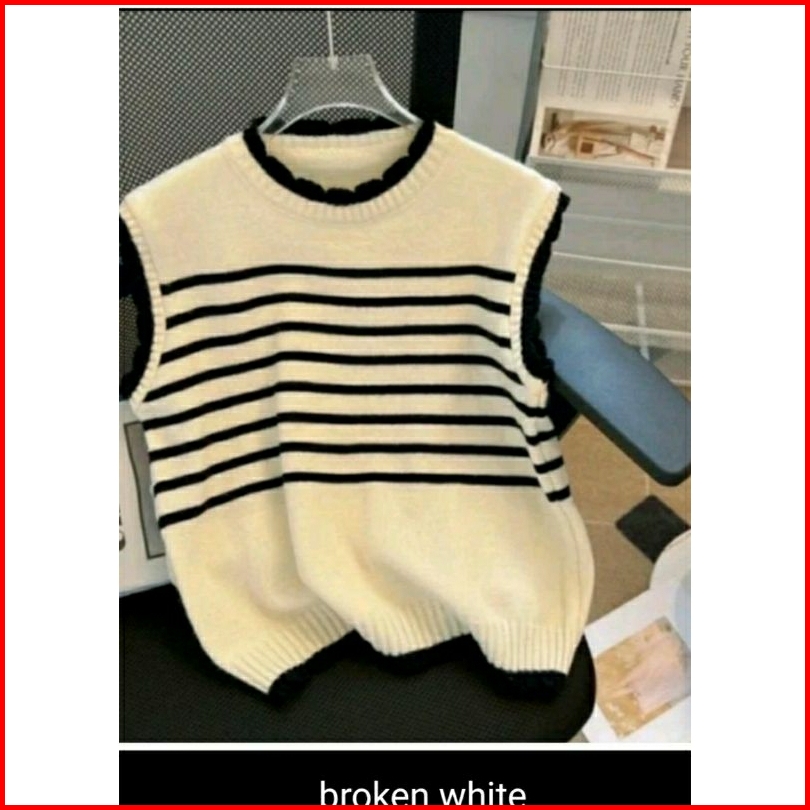 Vest Rompi Rajutan Atasan Switer List Bluos Strif Style Korea Luaran Modis