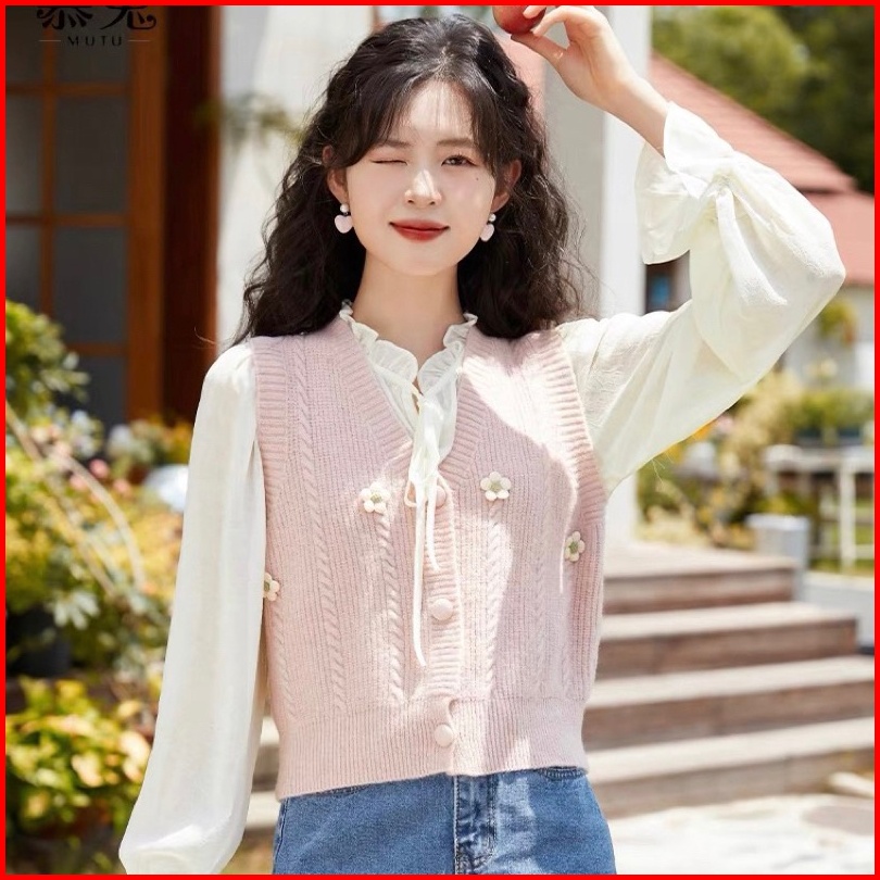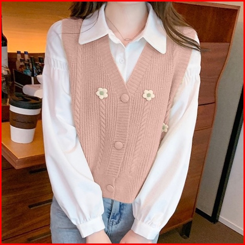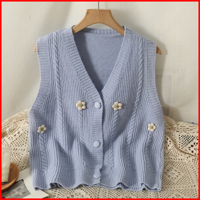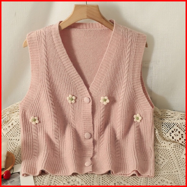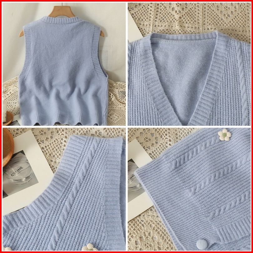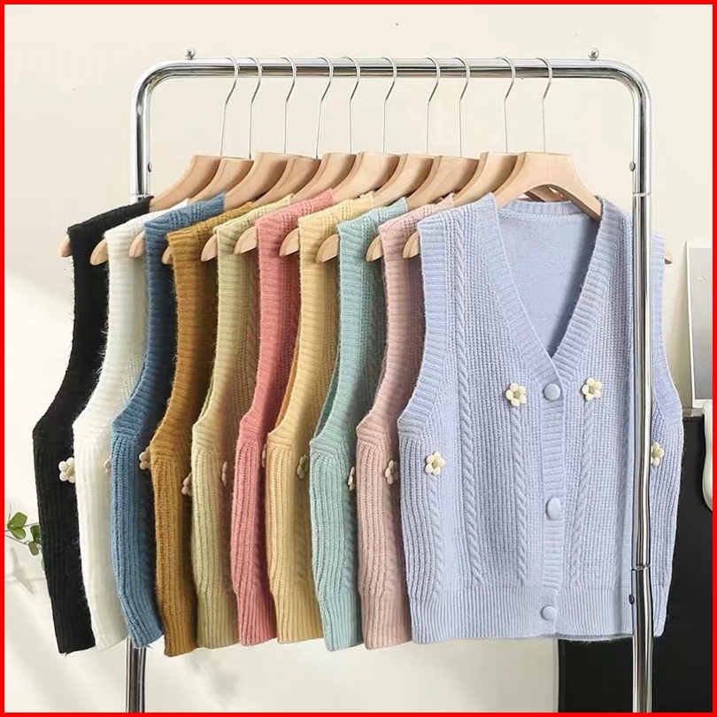 Vest Women Top Knit Rompi Wanita Bunga Flower Cute Sk778
