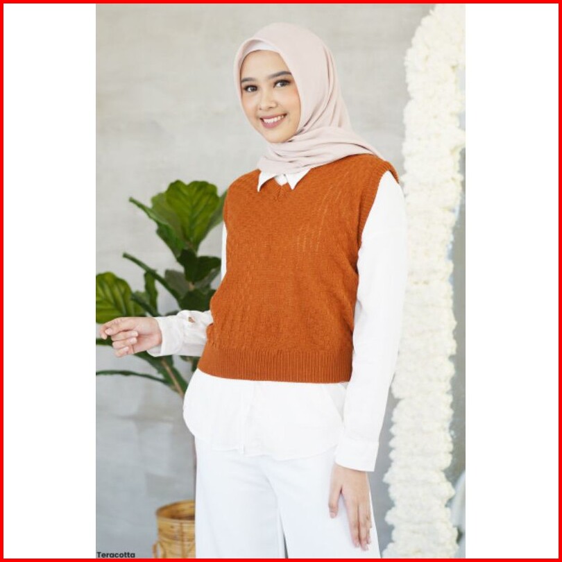 Vest Knit Rompi Rajut Wanita Chess Pattern Korean Street Style