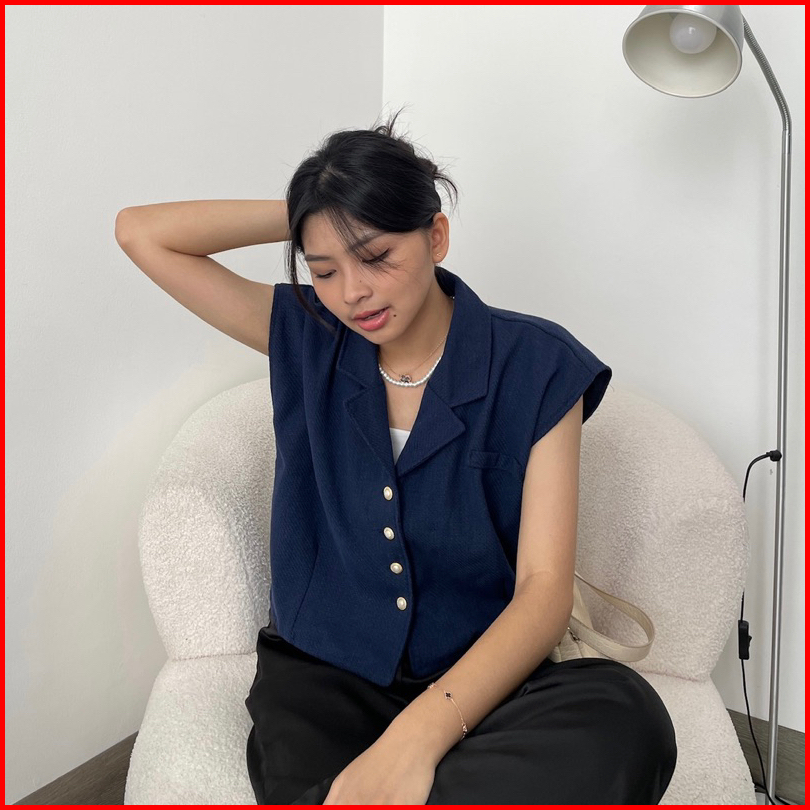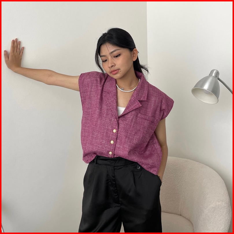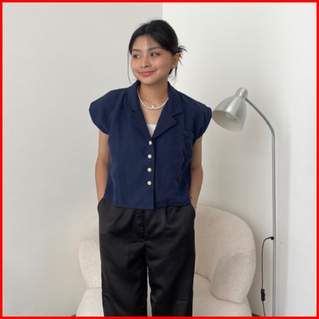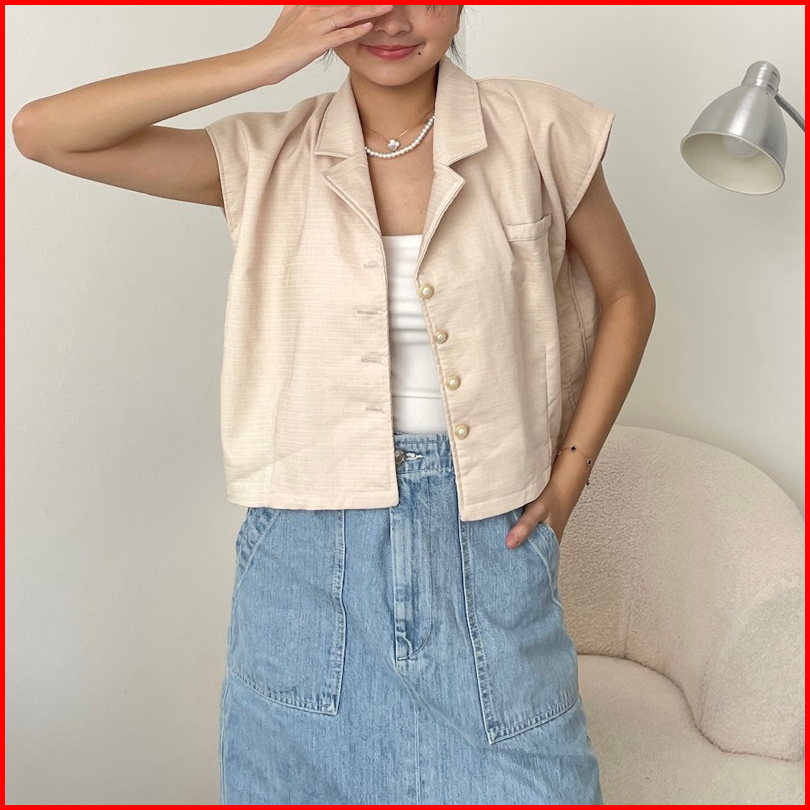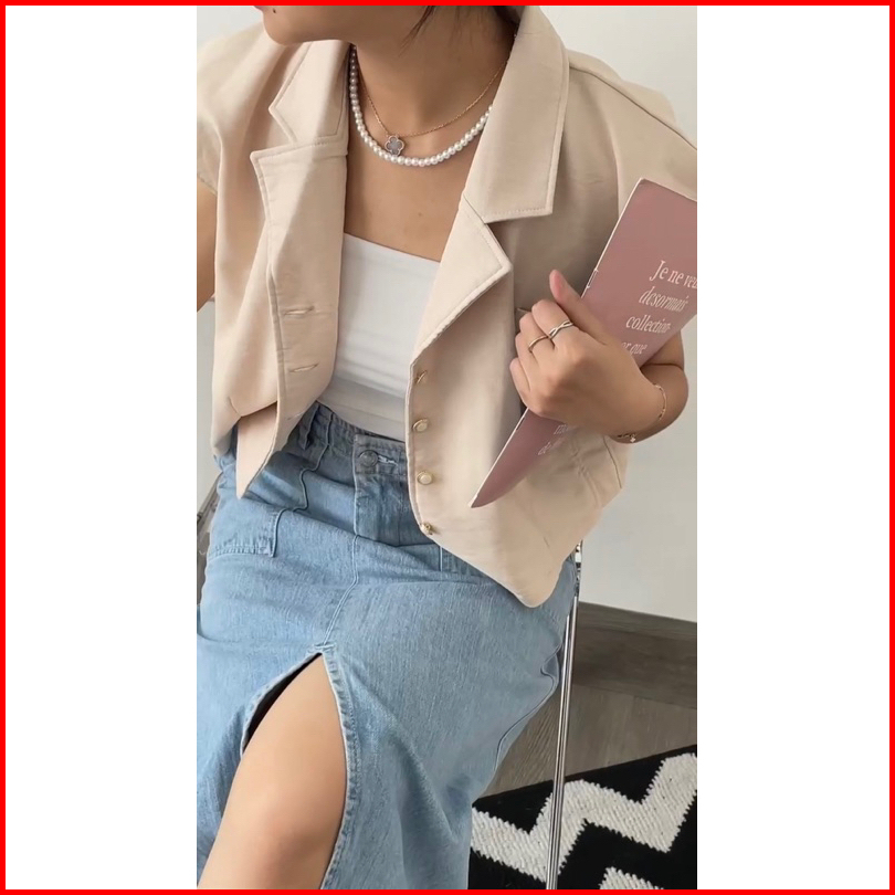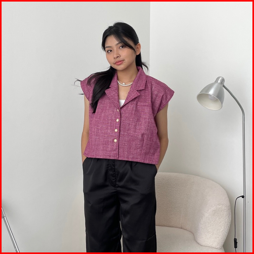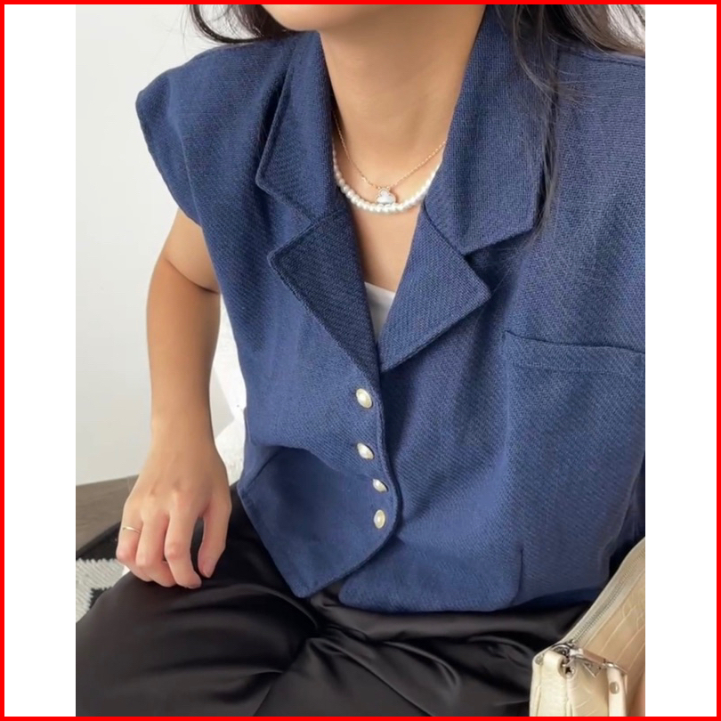 Ease - Gala Tweed Vest Oversized Vest Atasan Outer Blazer Wanita Luaran Crop Top Jaket Murah Baju Lengan Pendek