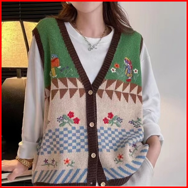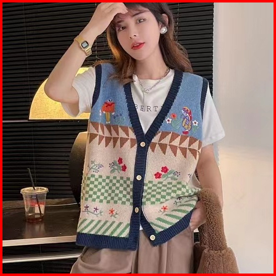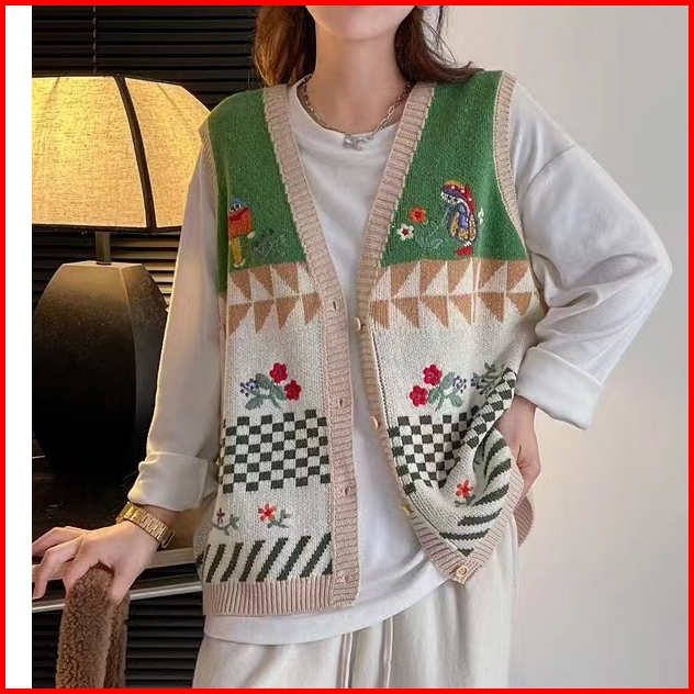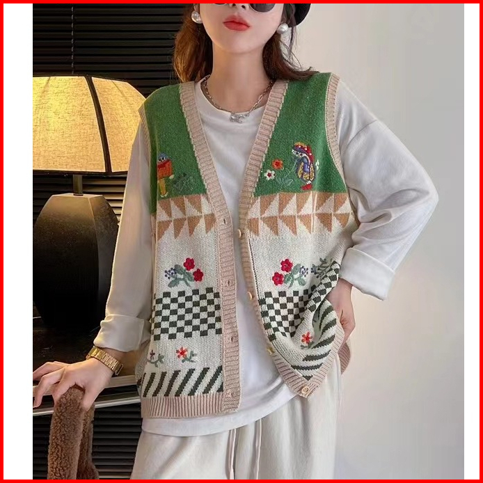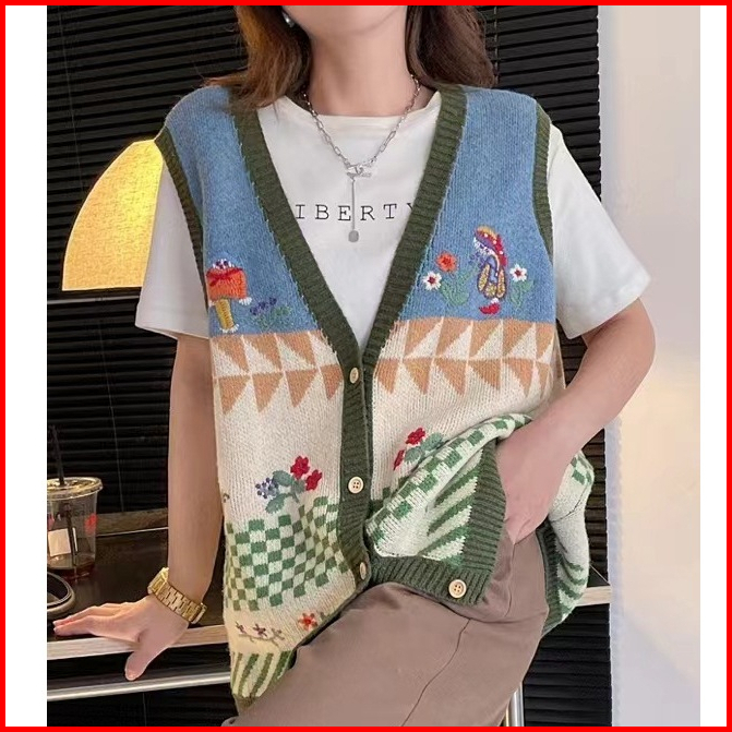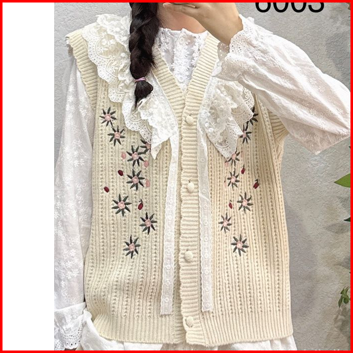 Vest Vintage Rajut Aksen Renda Dan Bordir Import Bkk Kode 25.9