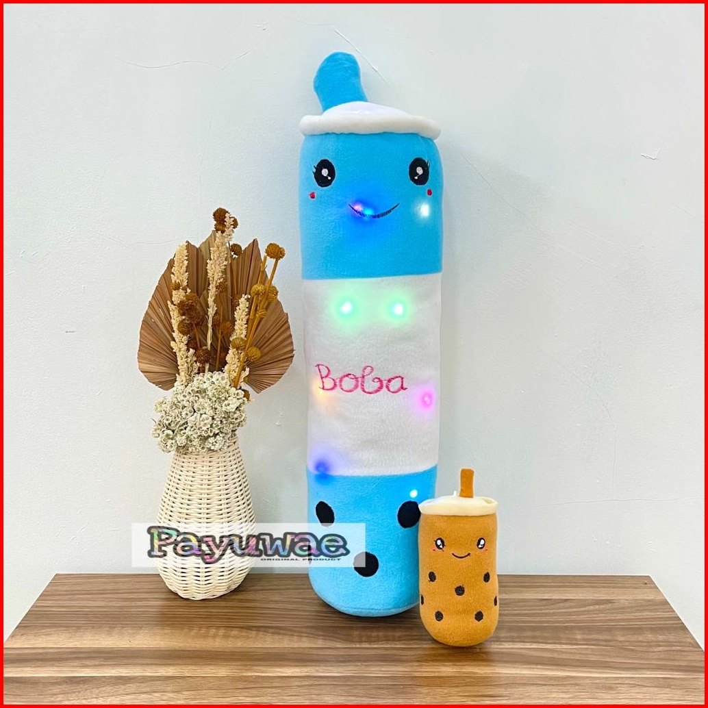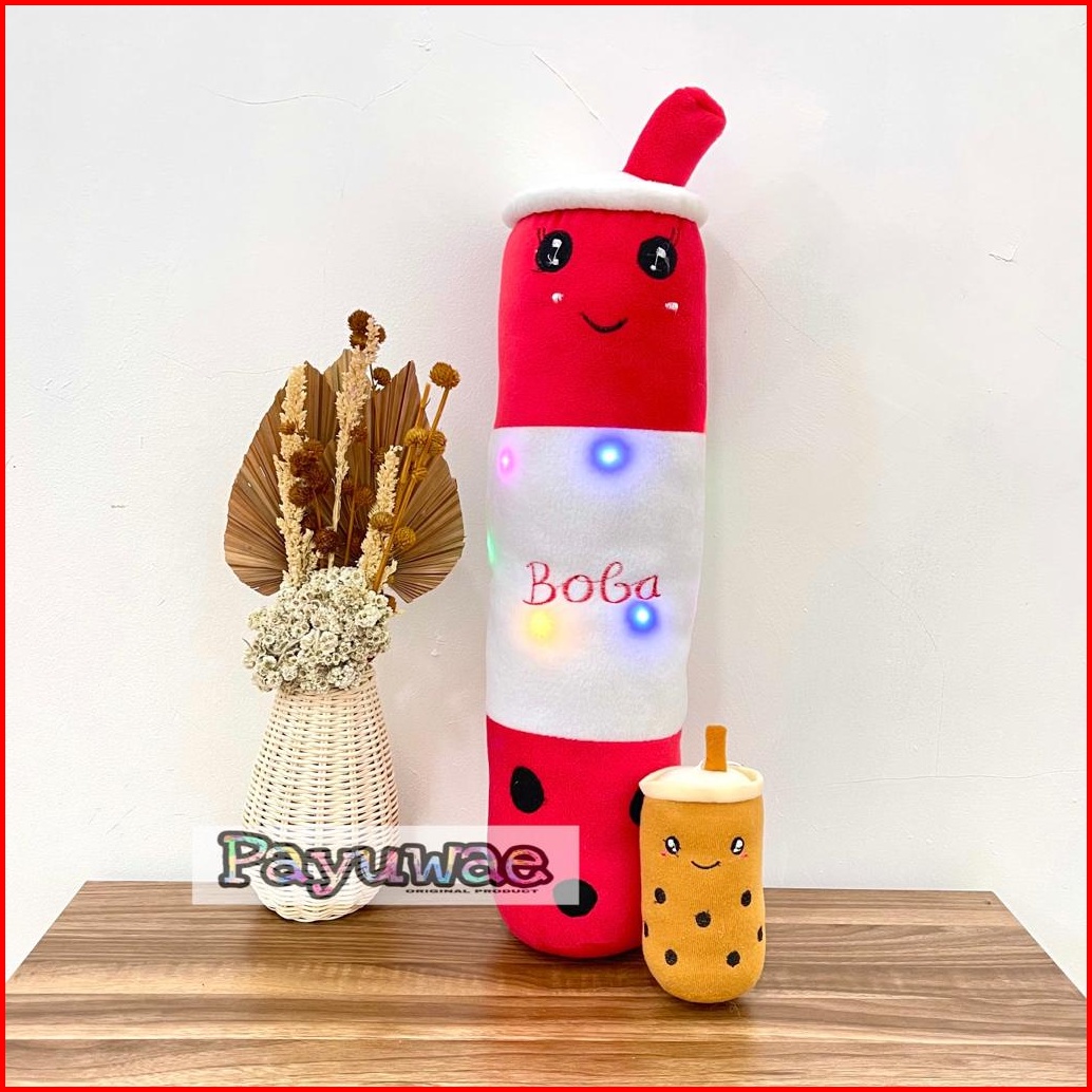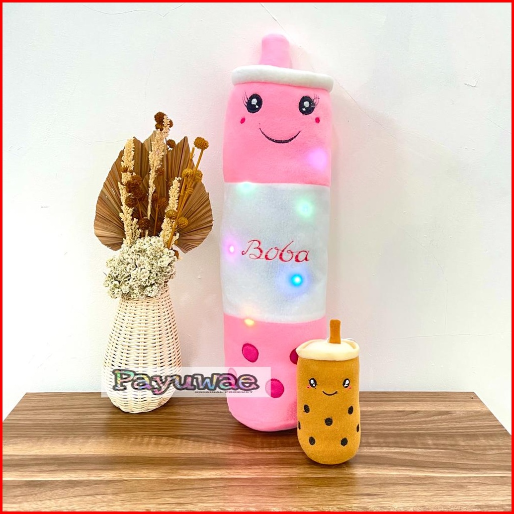 Guling Boneka Boba Milk Tea Lampu Led Nyala Gratis Boba Mini 1pcs Kain Halus Tinggi 60cm