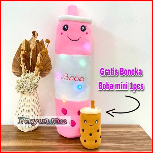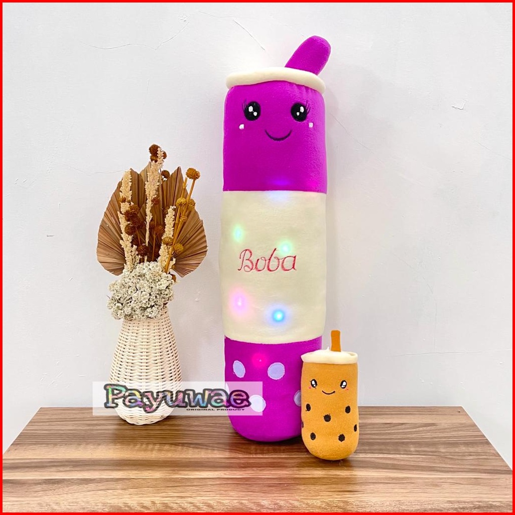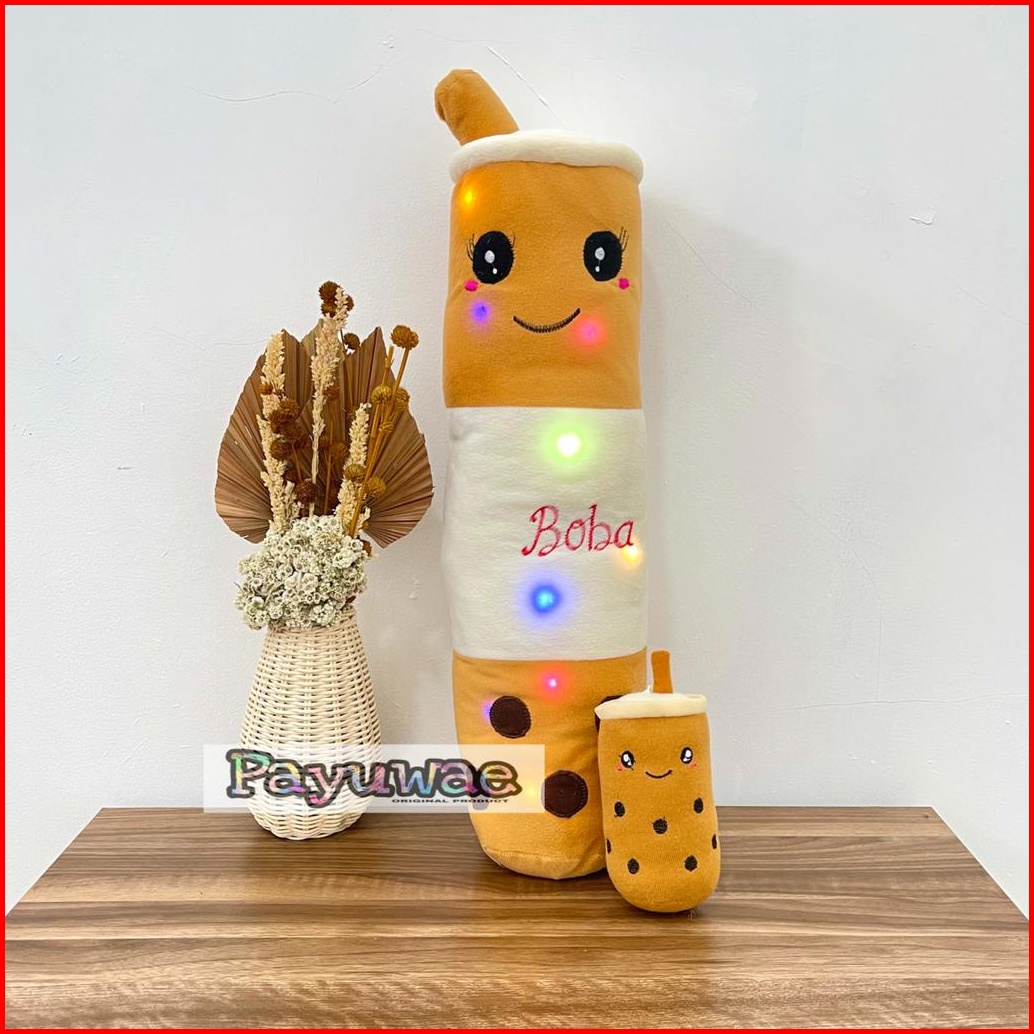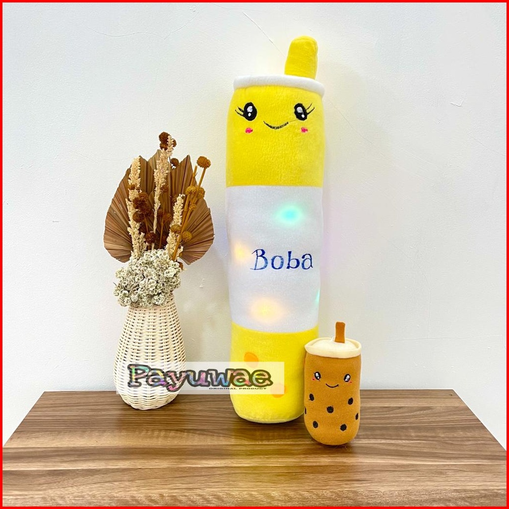 Guling Boneka Boba Milk Tea Lampu Led Nyala Gratis Boba Mini 1pcs Kain Halus Tinggi 60cm