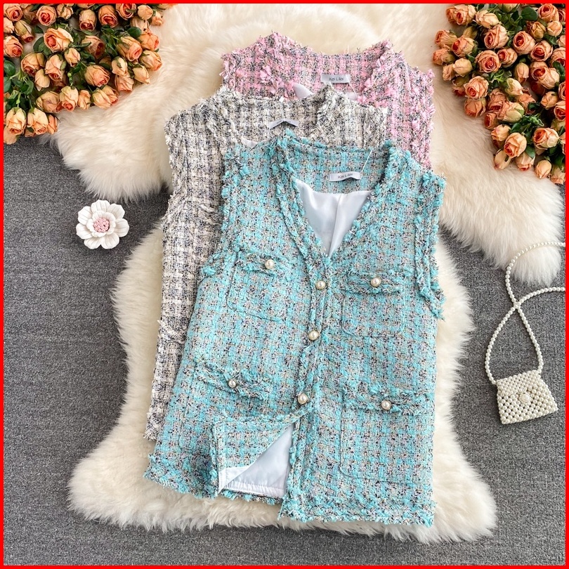 Ready Stock Ld 100 Danielle Tweed Vest Rompi Korea Premium Fairlady Id C4