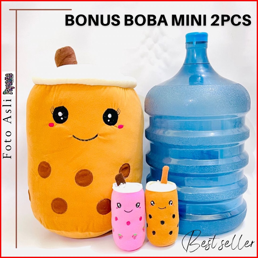 Boneka Boba Milk Tea Jumbo Tinggi 45cm Geratis Boba Mini 2pcs Mainan Boneka Boba Terlaris