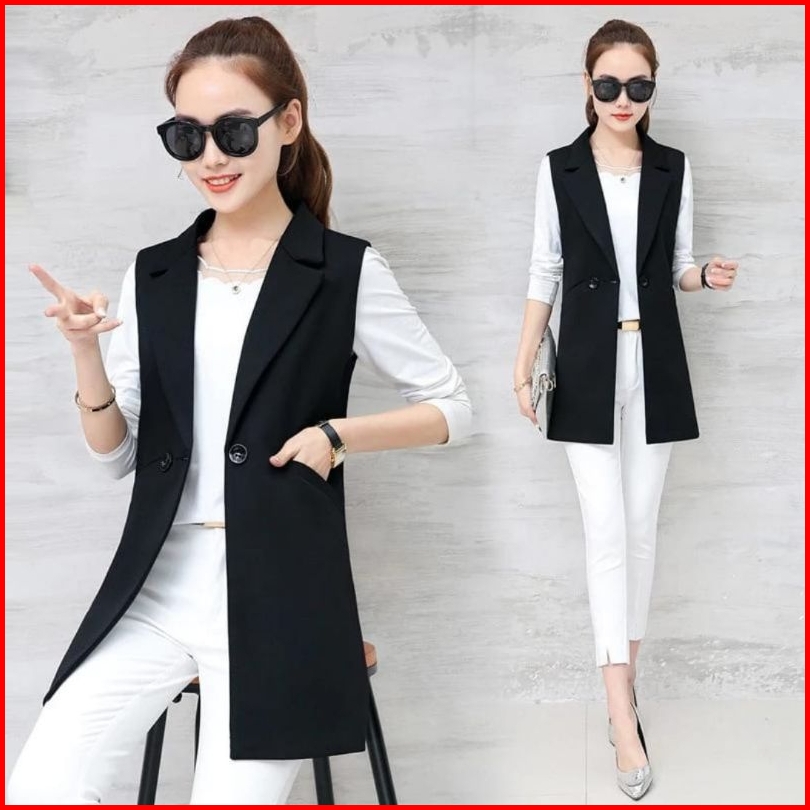 Pocket Vest Blazer - Vest Wanita - Rompi Wanita - Atasan Wanita - Outer Wanita
