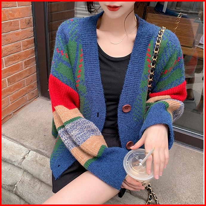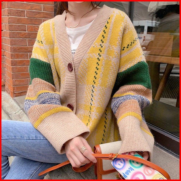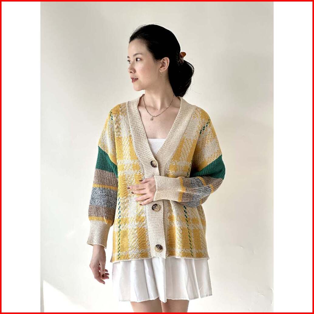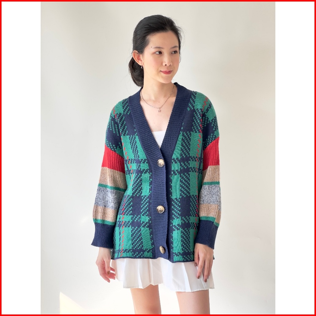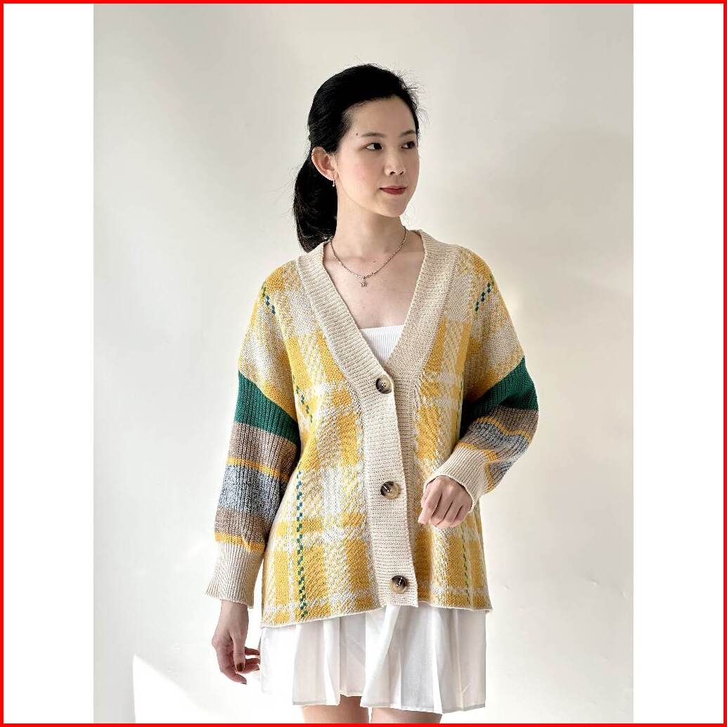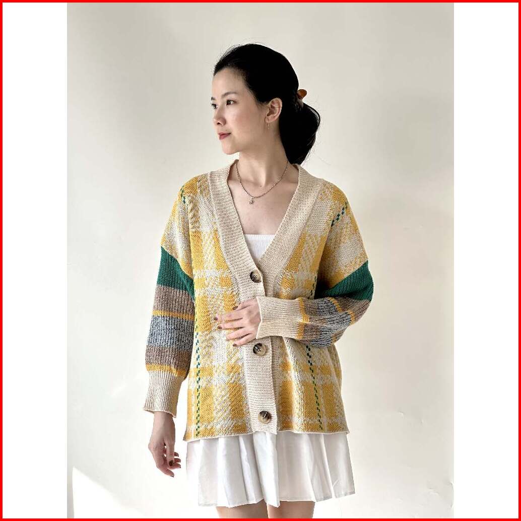 Contrast Cardi Korean Cardigan Sweather Korea Sweater Wanita Bahan Rajut Premium