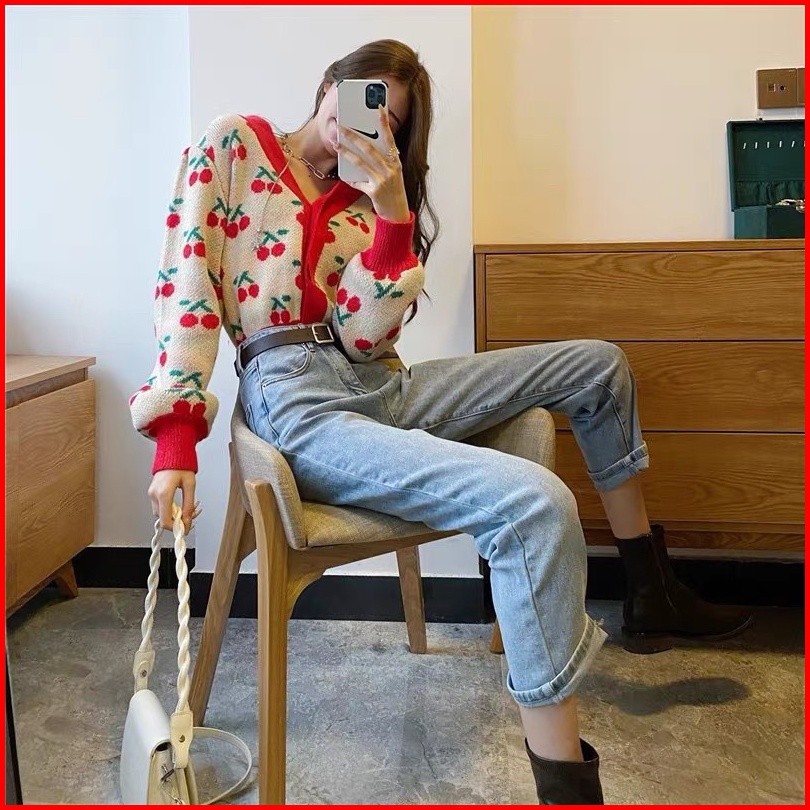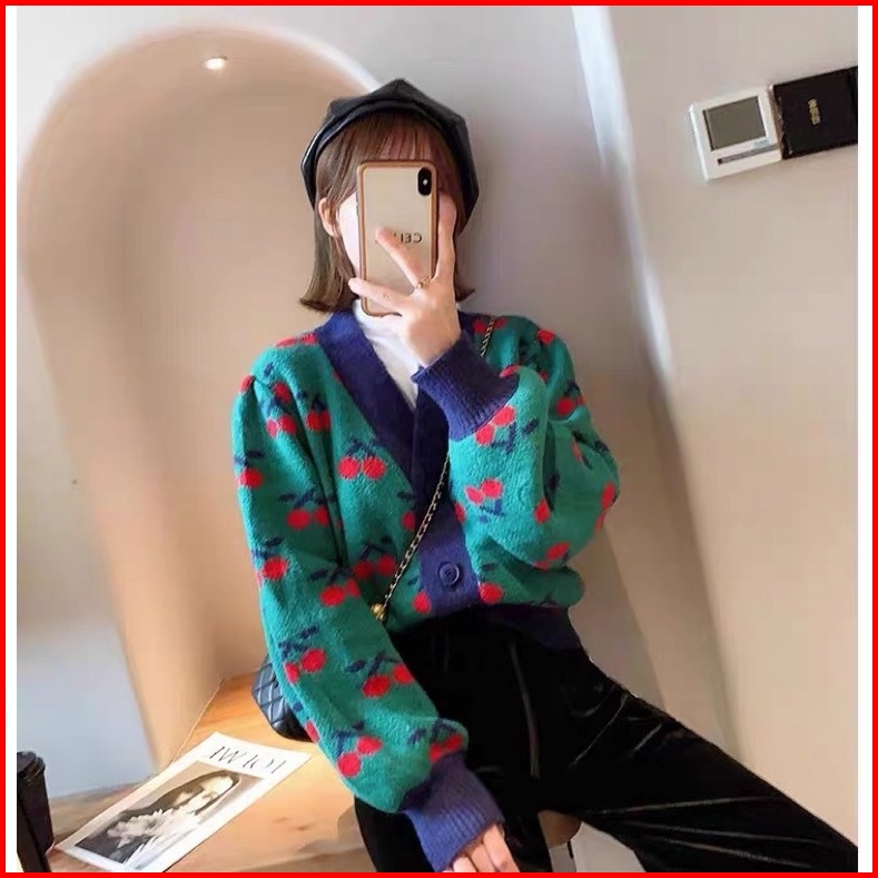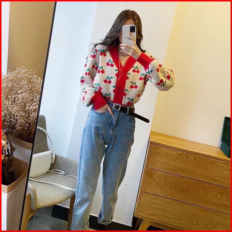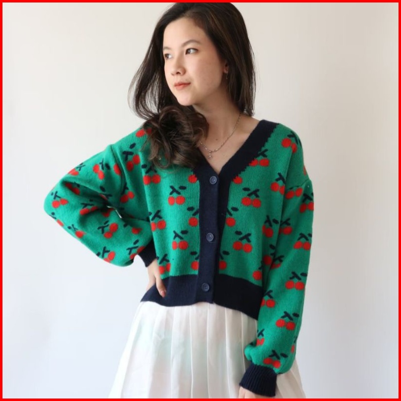Cherry Cardigan Cardigan Korea Cardi Murah Ala Pinterest Cardigan Rajut Premium