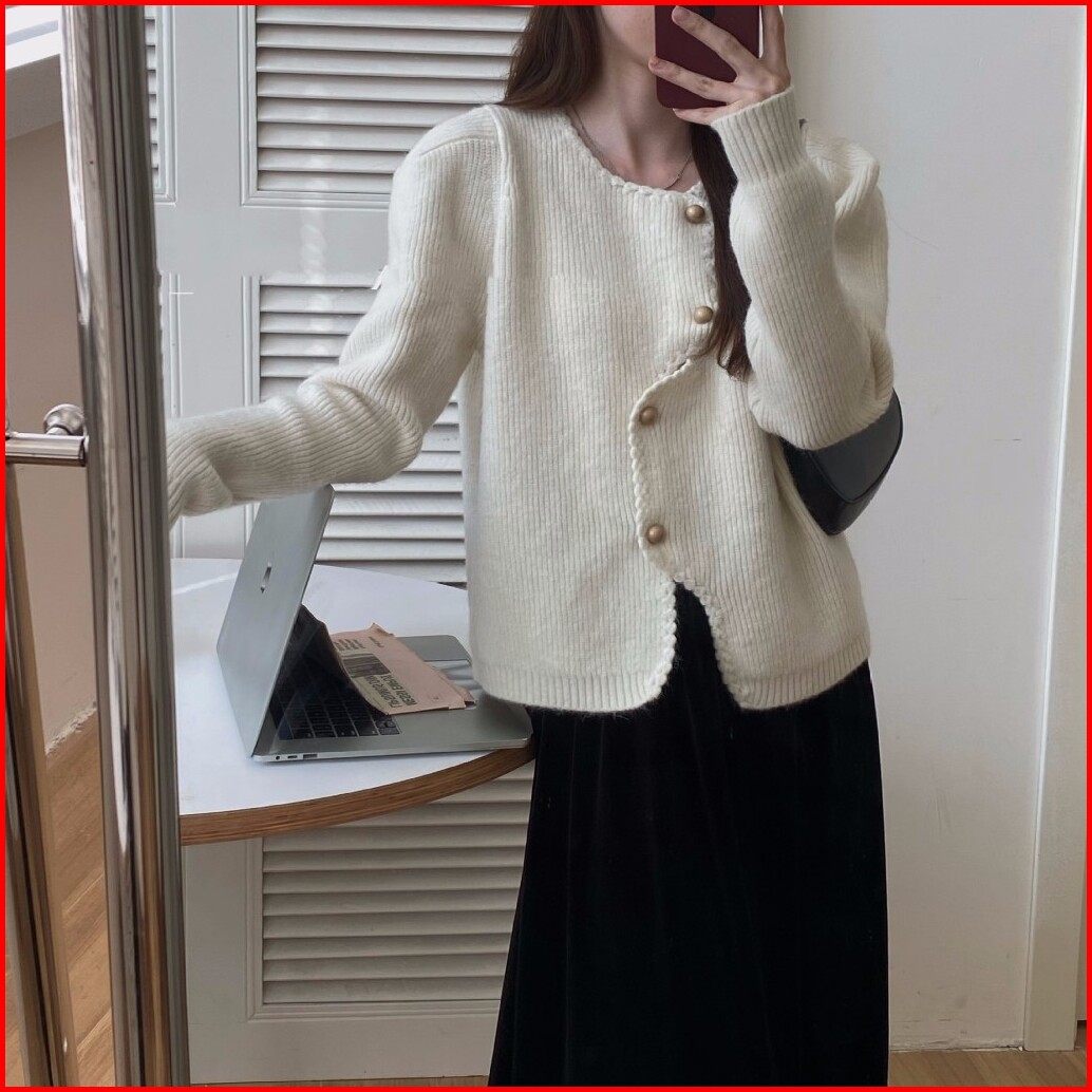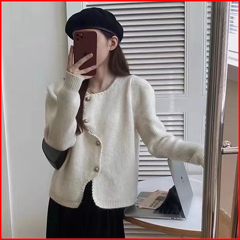 White Curvy Button Cardi Korean Cardigan Sweather Korea Sweater Wanita Bahan Rajut Premium