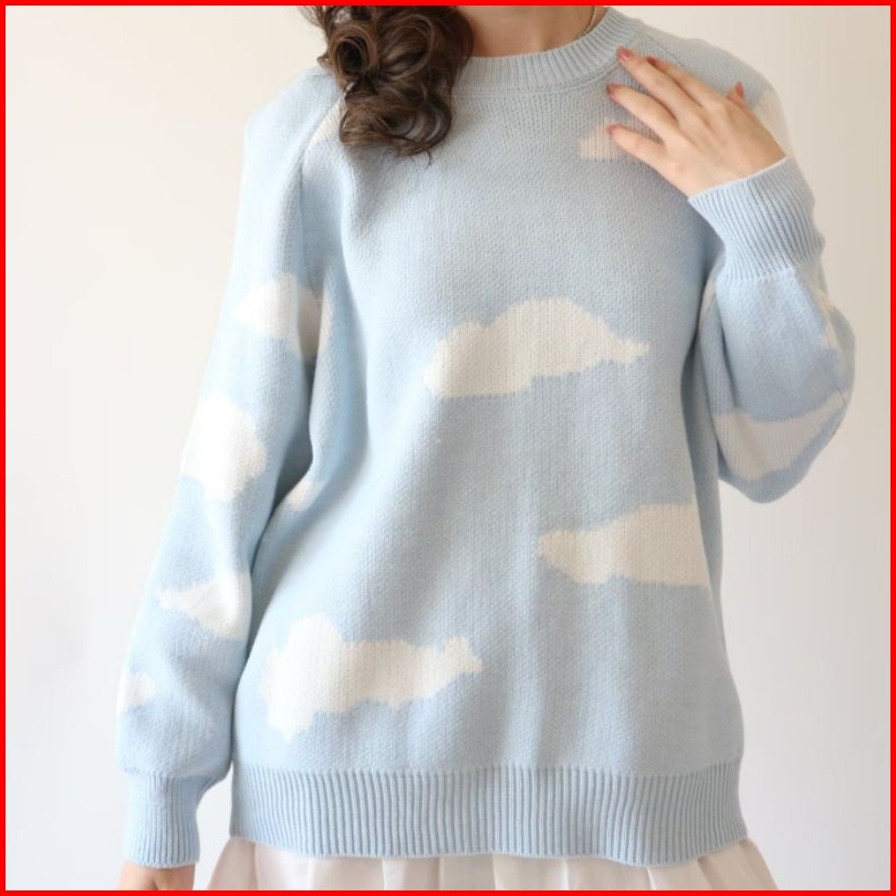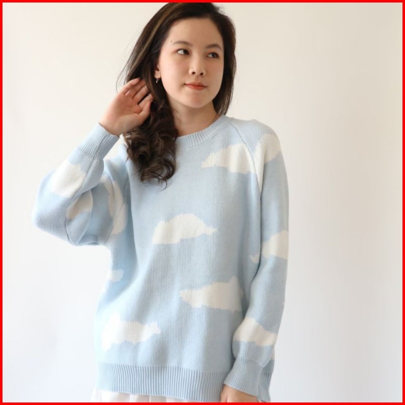 White Cloudy Sweather Korean Cardigan Sweather Korea Sweater Wanita Bahan Rajut Premium