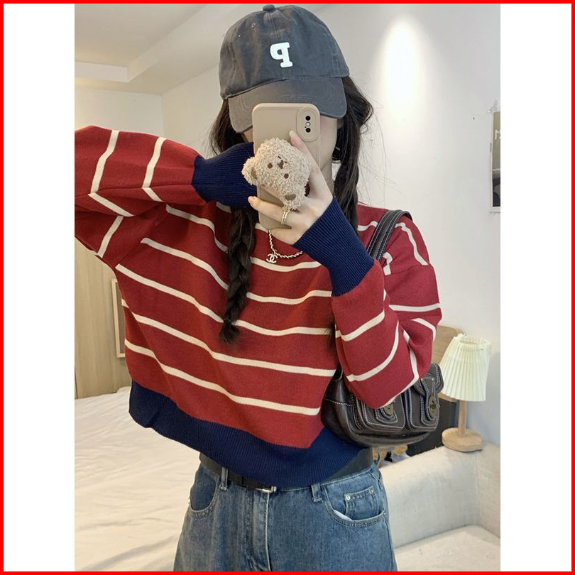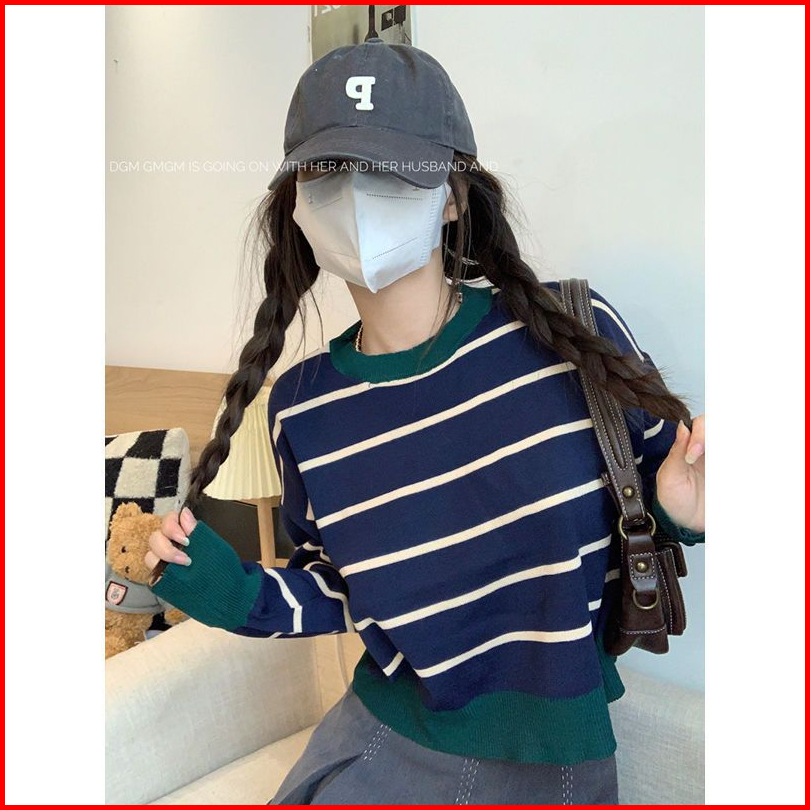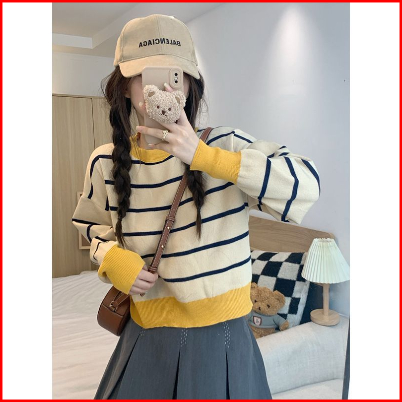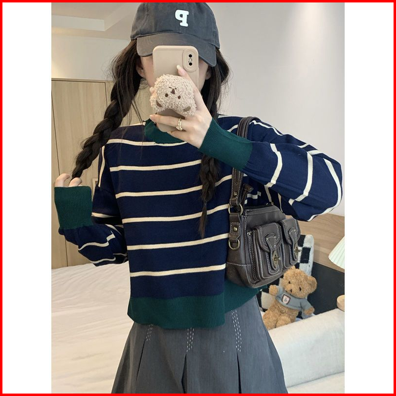 Colorful Stripes Blouse Korean Cardigan Sweather Korea Sweater Wanita Bahan Rajut Premium