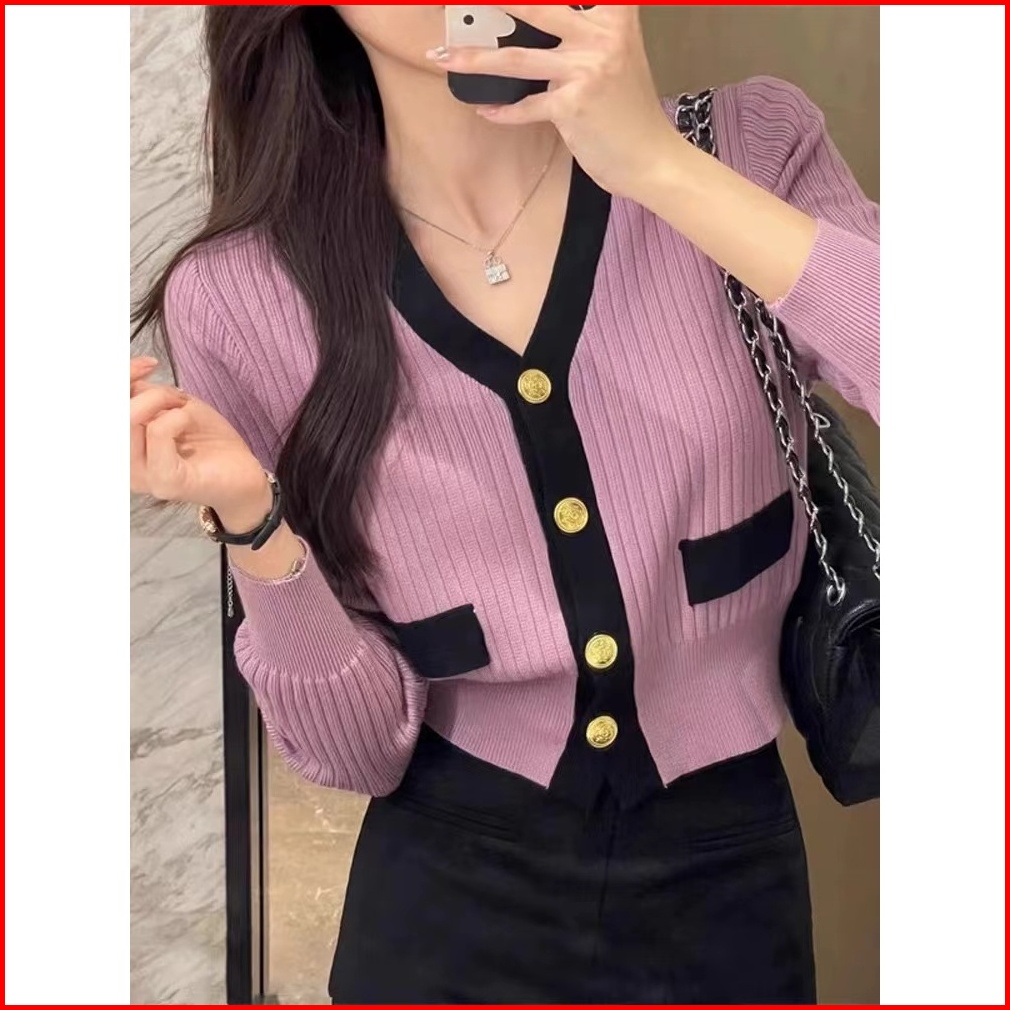 Monaofficial Jisoo Cardi Top Knit Import - Blouse Wanita - Atasan Rajut Wanita Tm