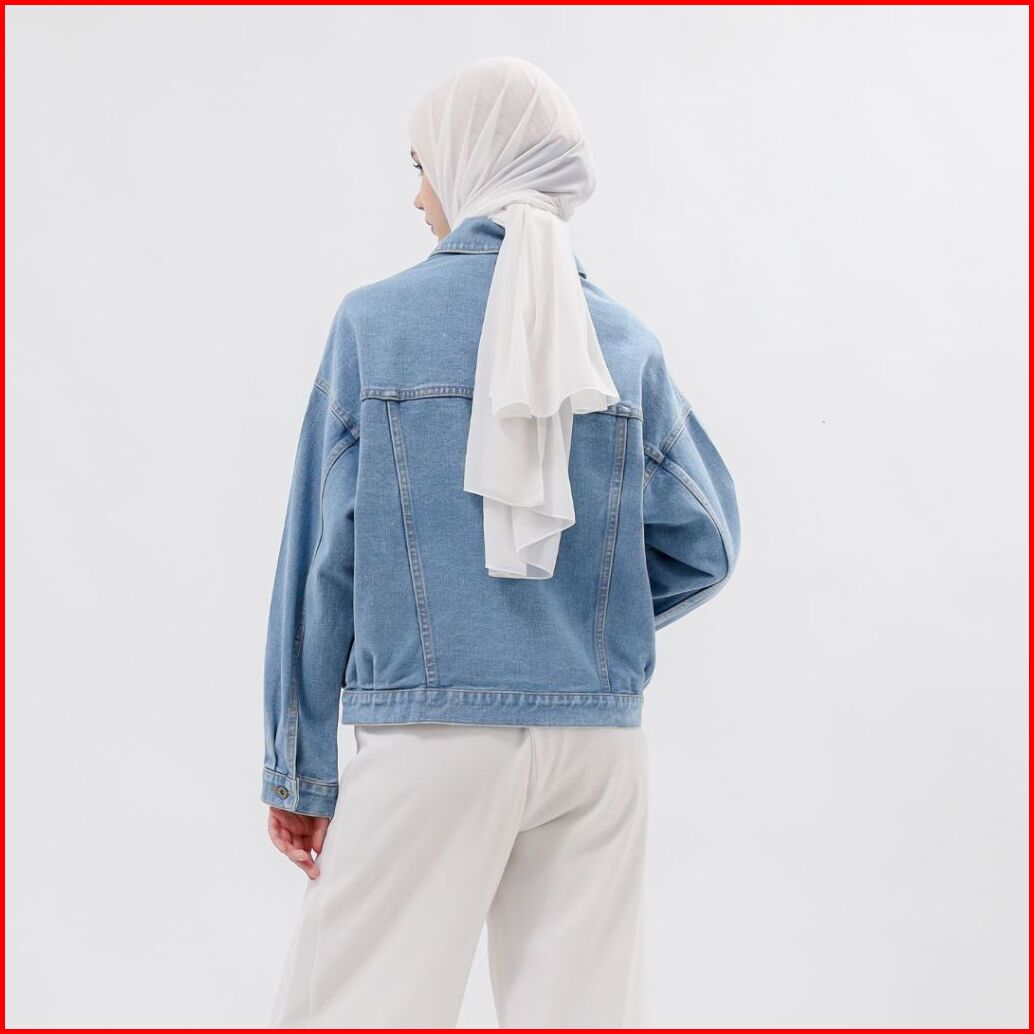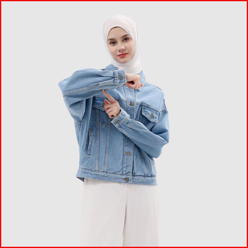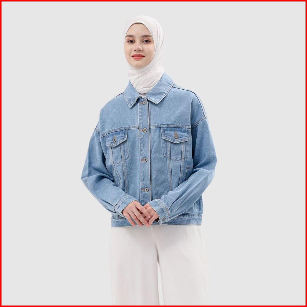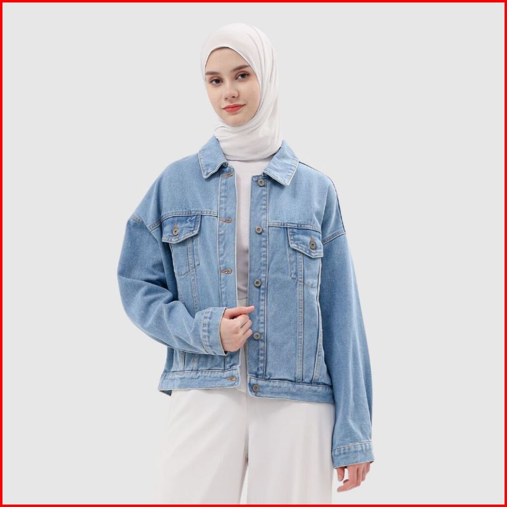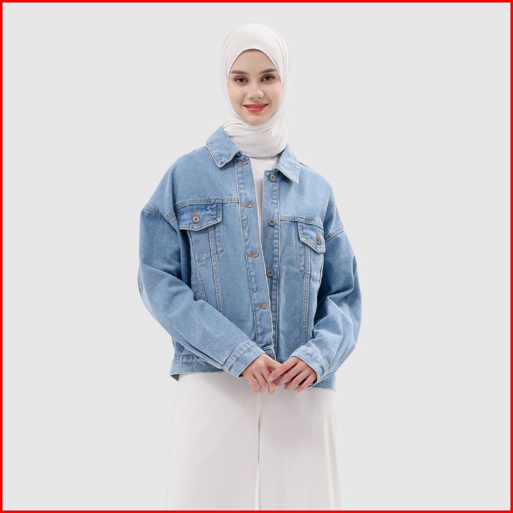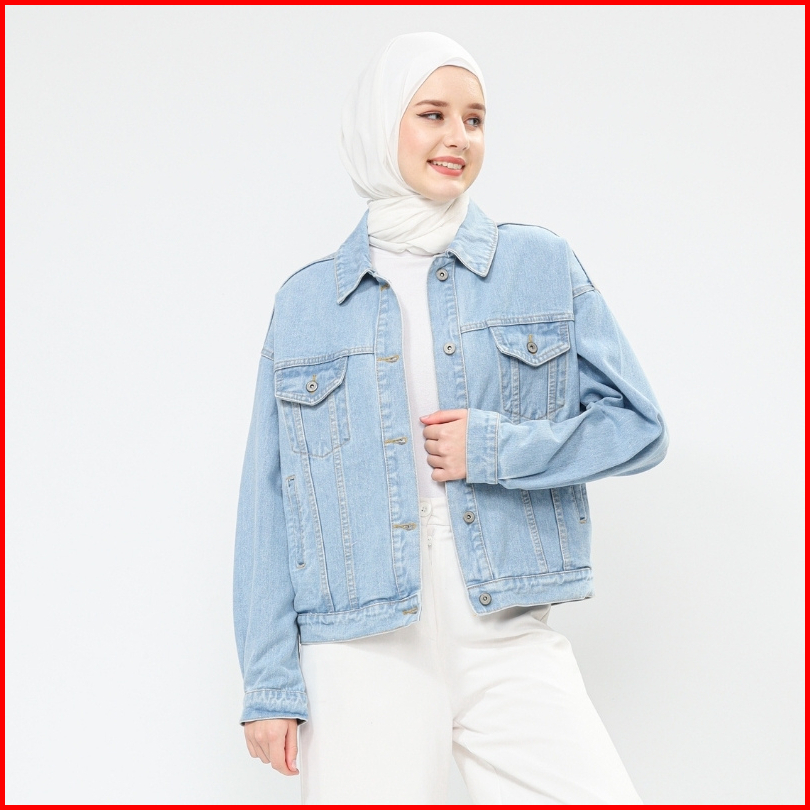 Myself Jaket Jeans Oversize Wanita Biru Muda Marioline
