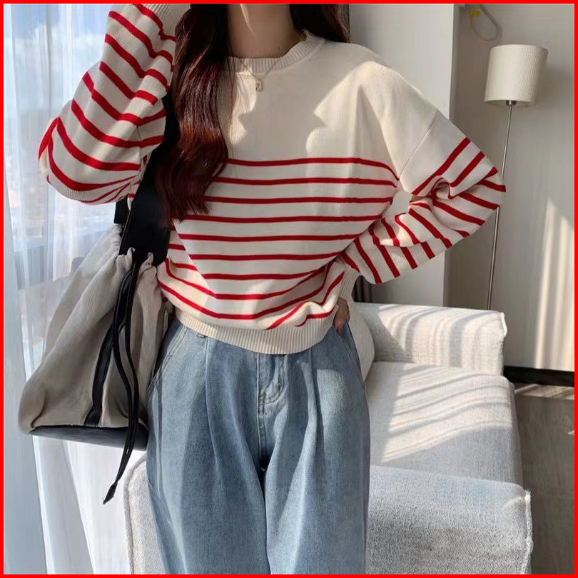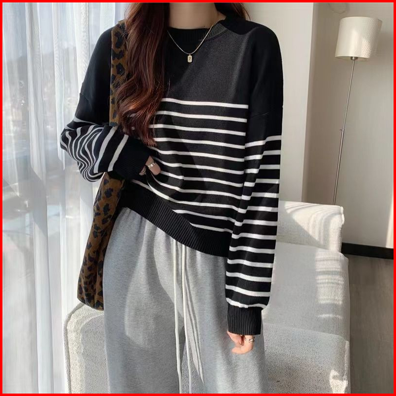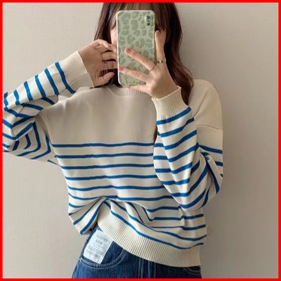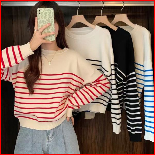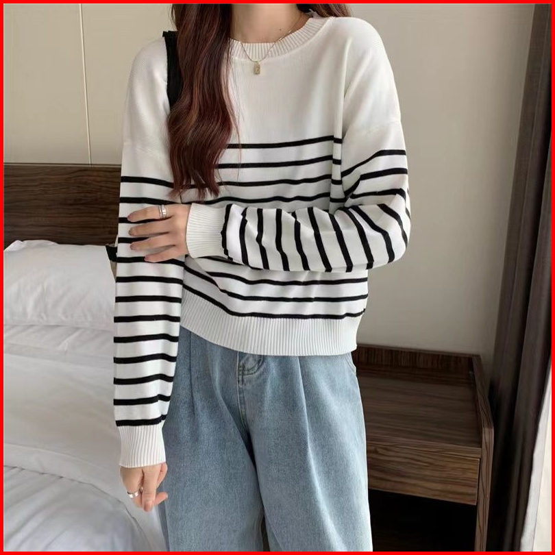 Basic Stripes Sweater Sweater Oneck Blaster Top Knit Lengan Panjang