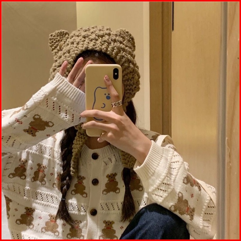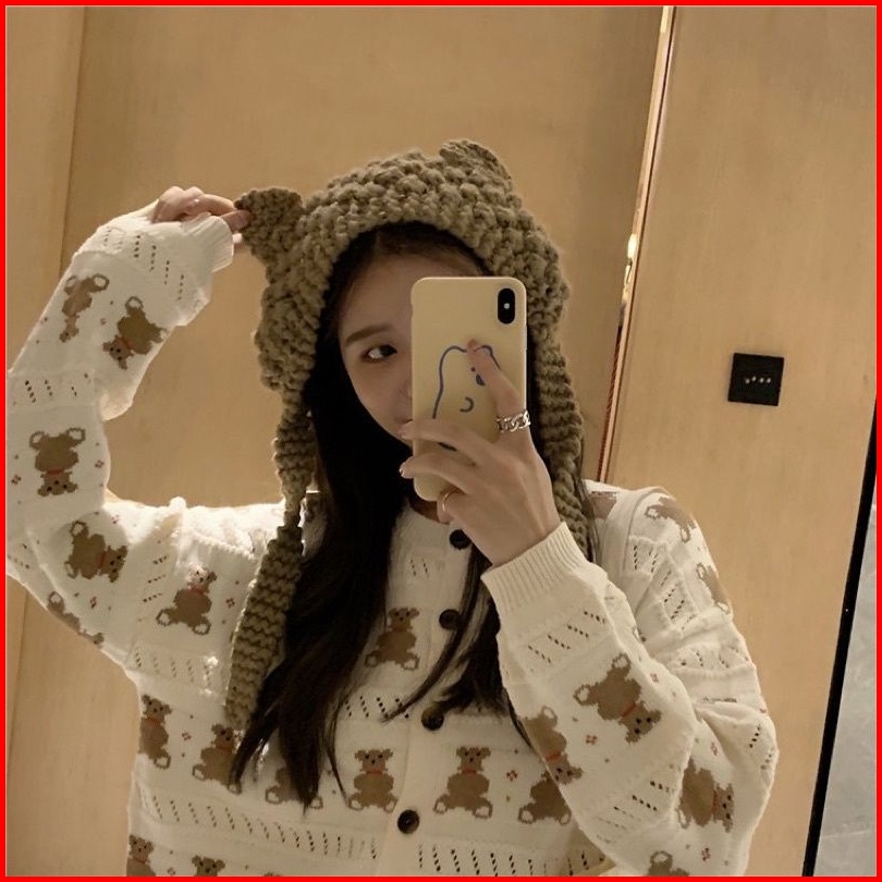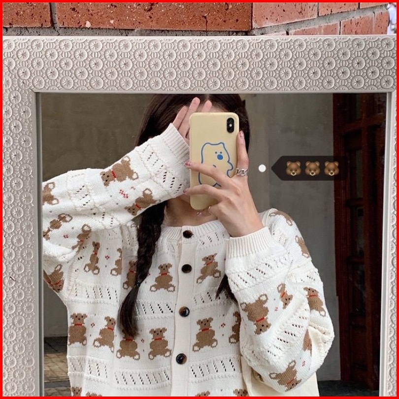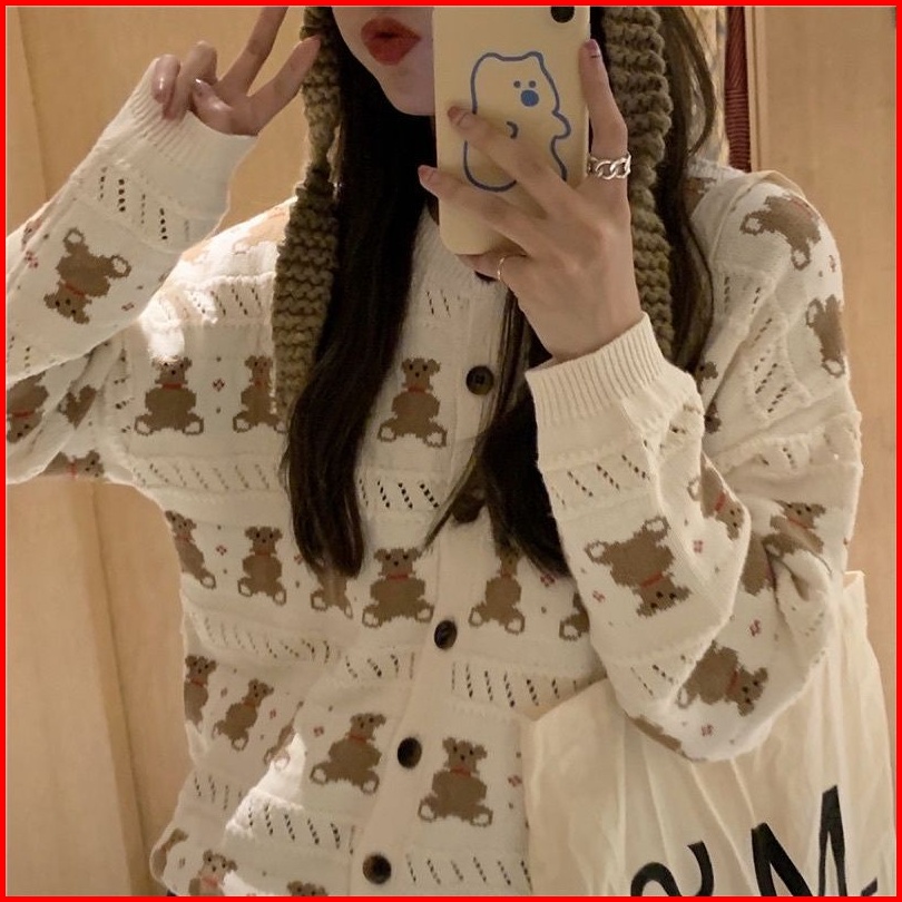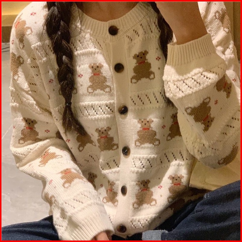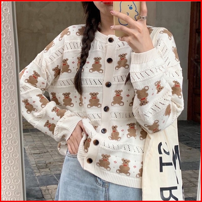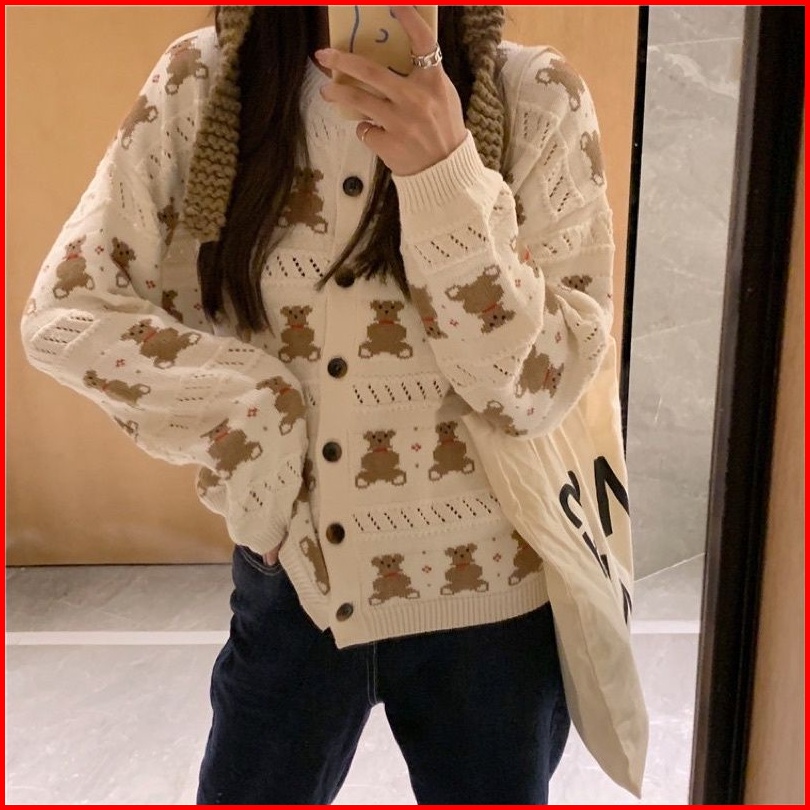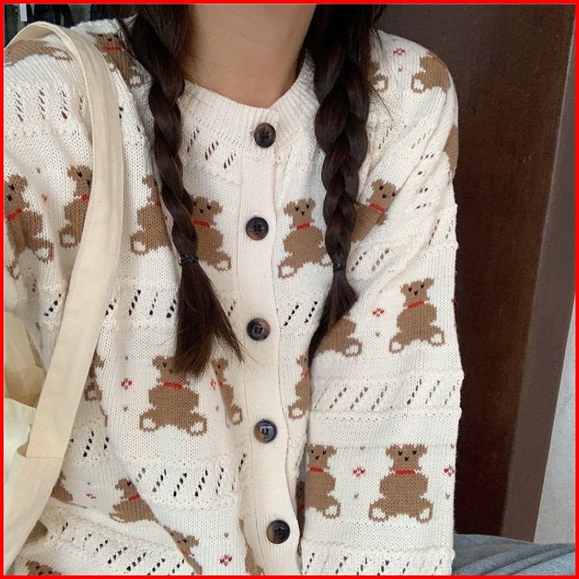 Pads Cardigan Fuzzy Bear Knit Import Premium