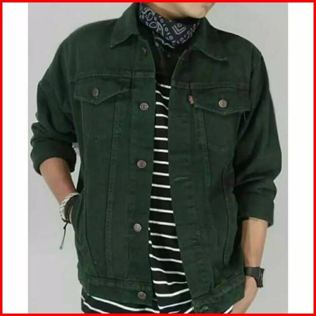 Jaket Jeans Pria Army Cowok Levi Oversize Jumbo Big Size Xxl Xxxl Hijau Tua Muda