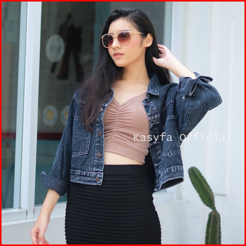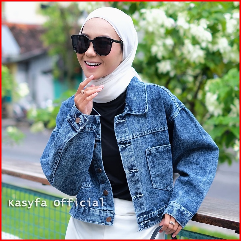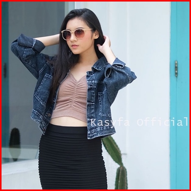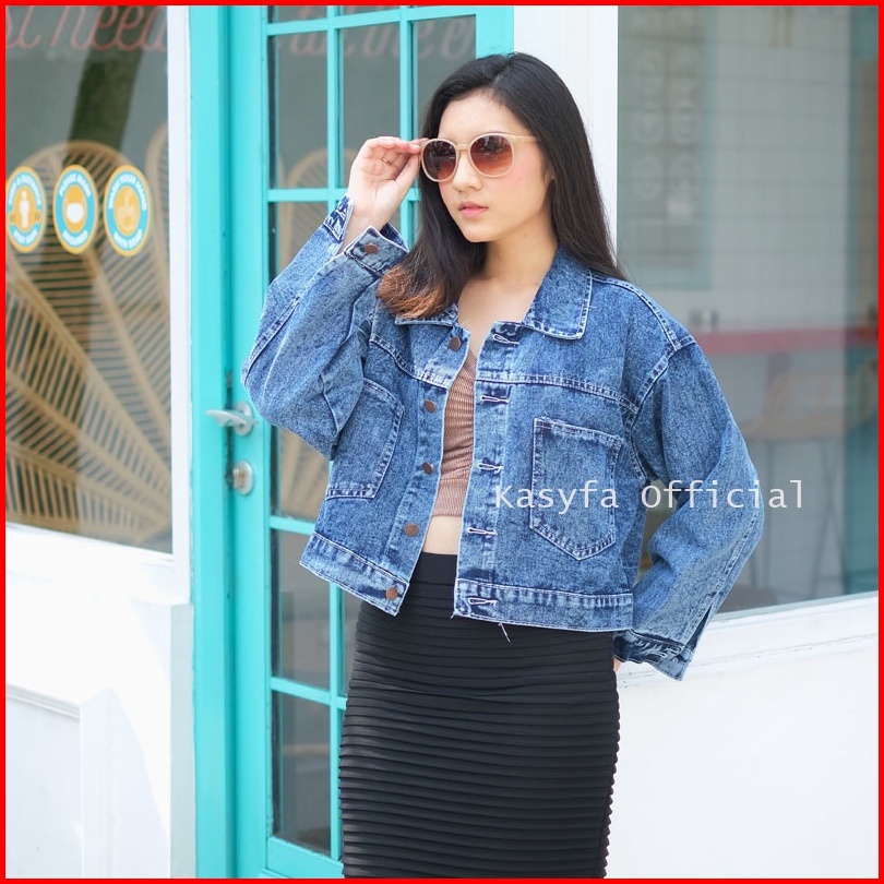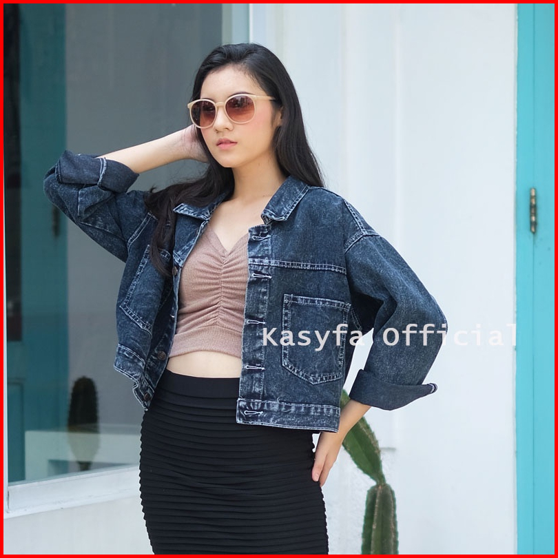 Veksa Jaket Crop Jeans Oversize Pocket Denim