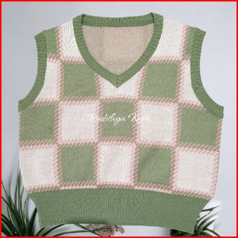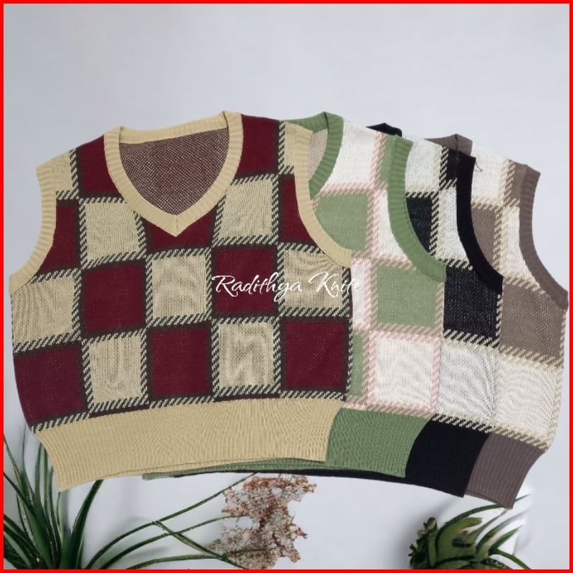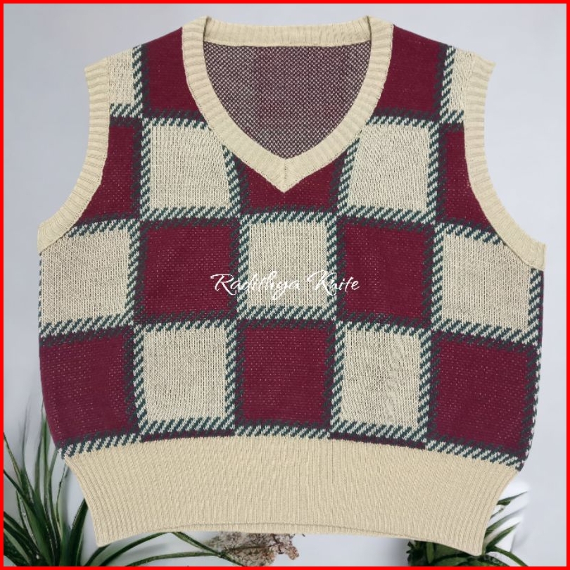 Rompi Rajut Knited Frame Argyle Rompi Vest