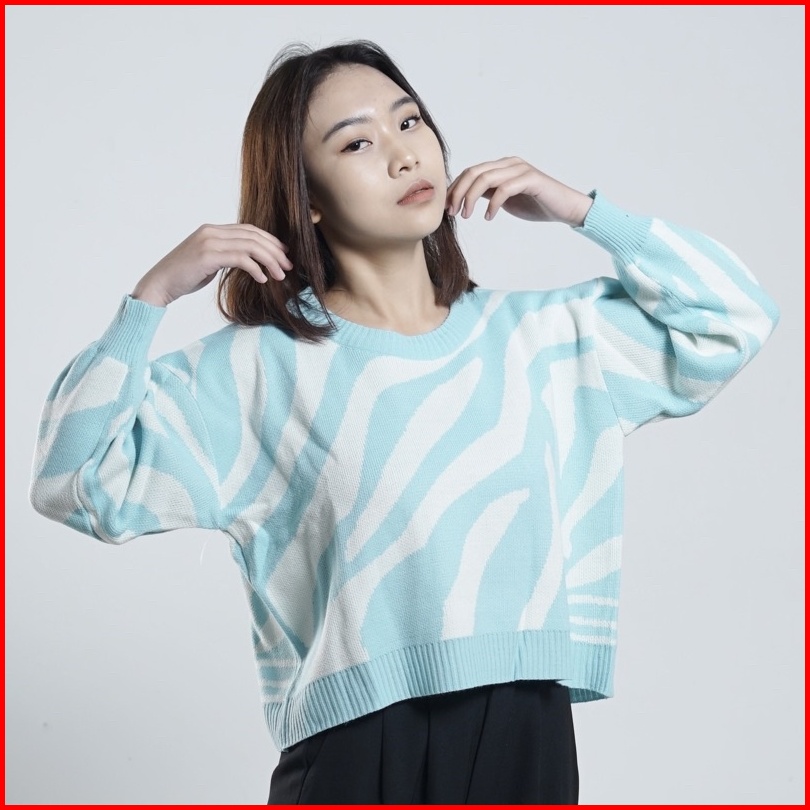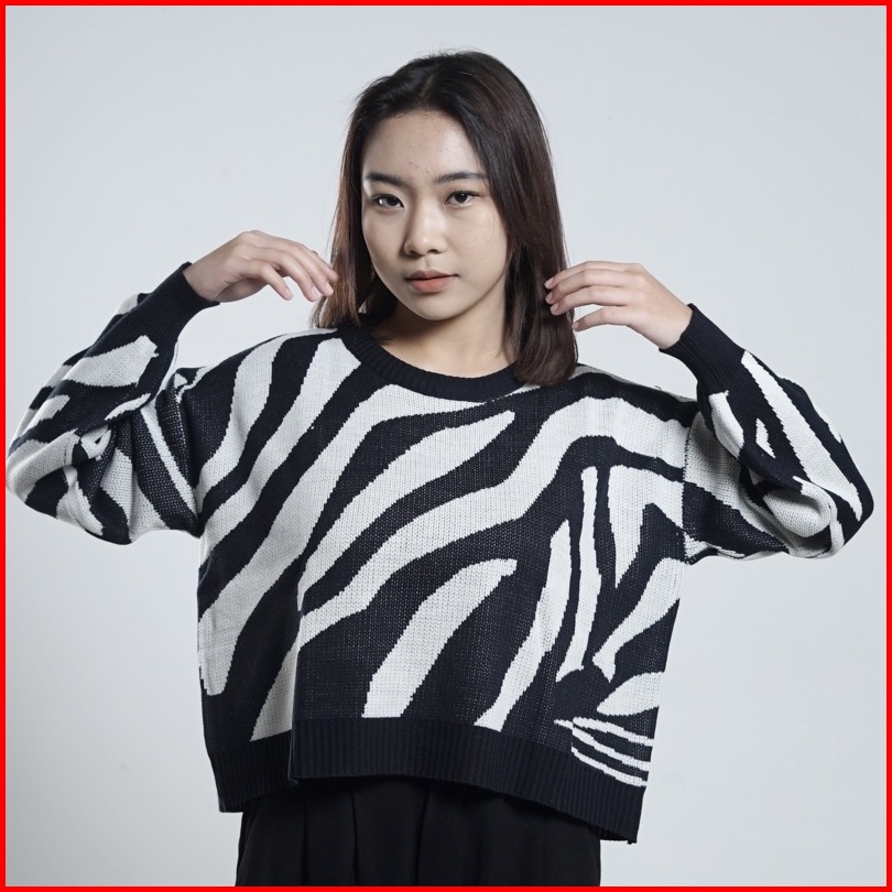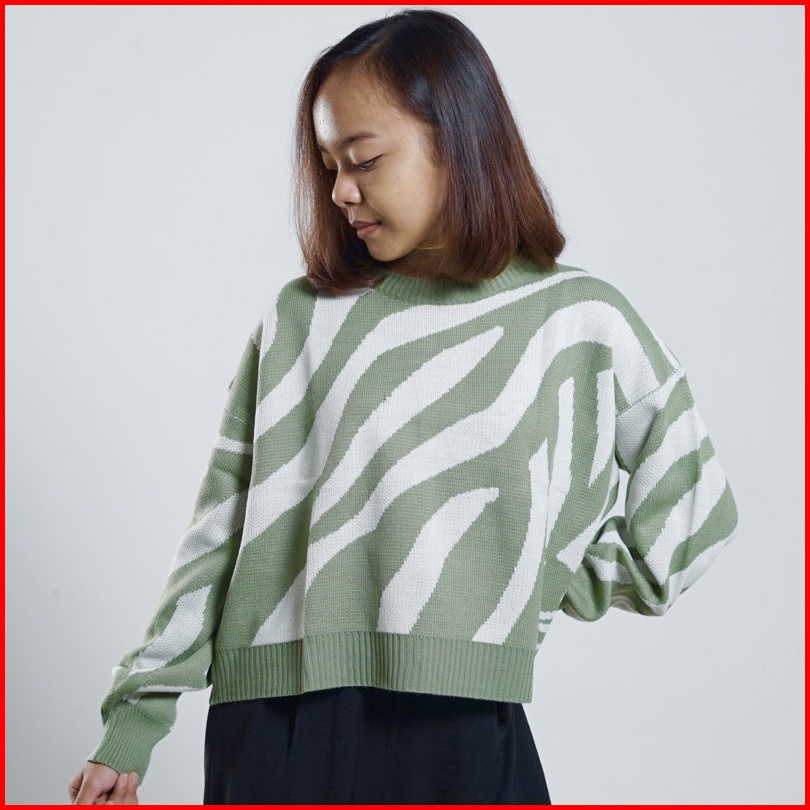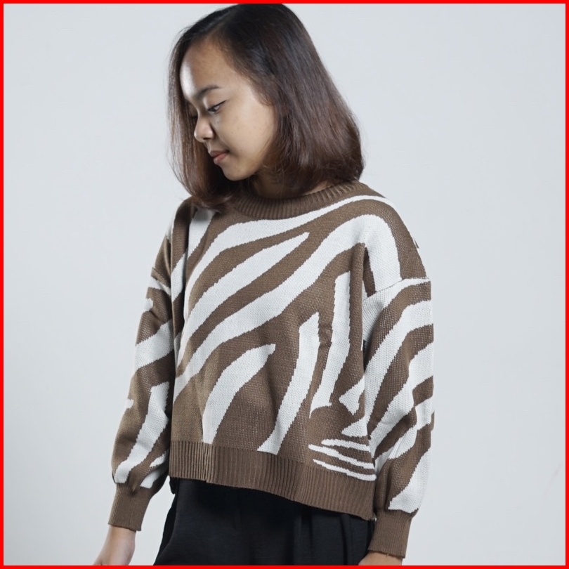 Zebra Crop Sweater Wanita Rajut Garis-garis