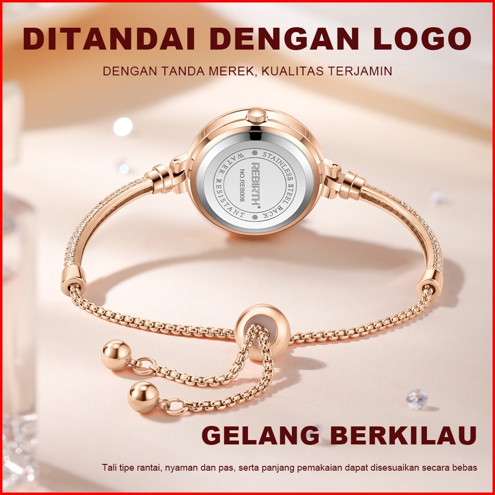 Rebirth Jam Tangan Wanita Anti Air Gelang Gaya Berlian Tali Merenggang Jam Tangan Cewek Original