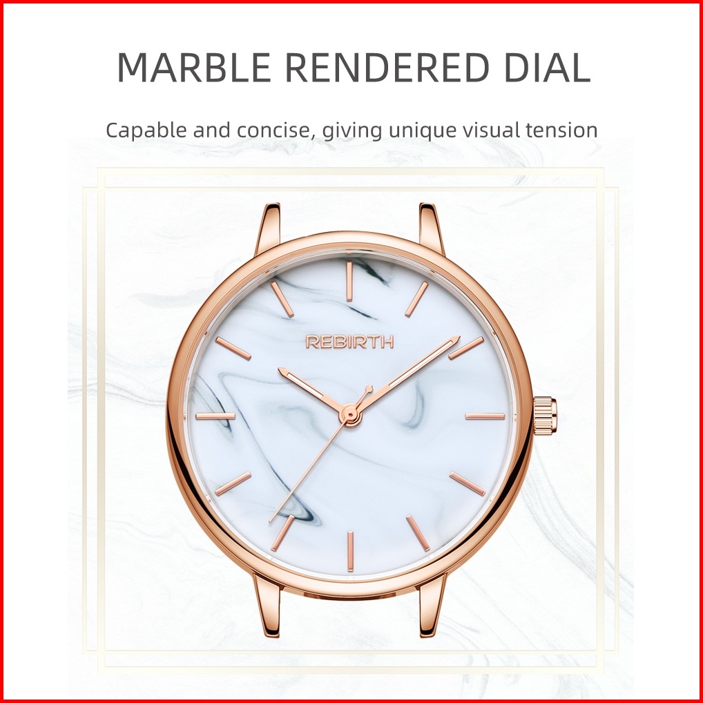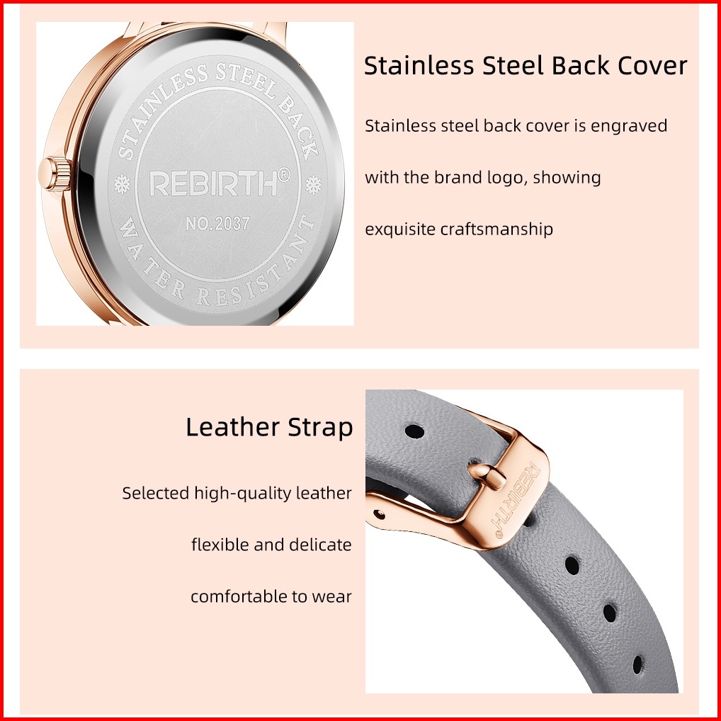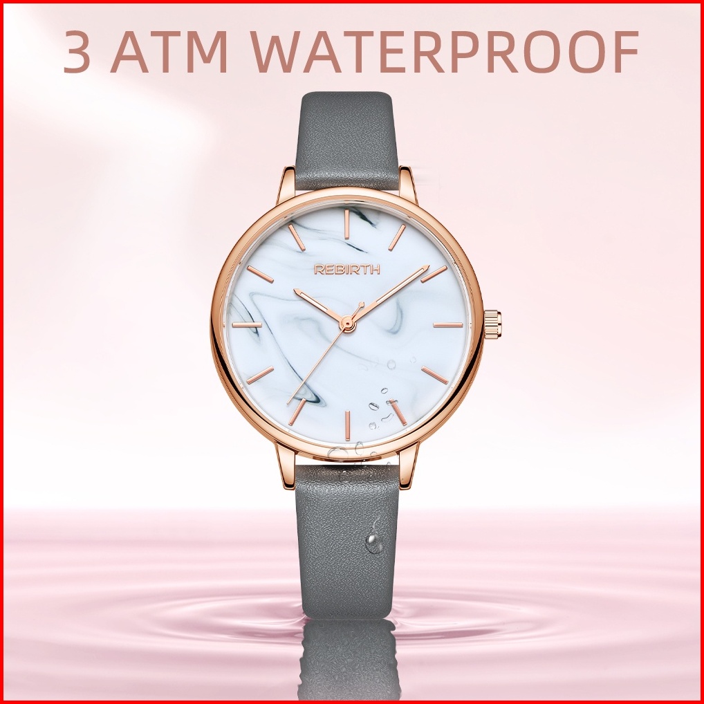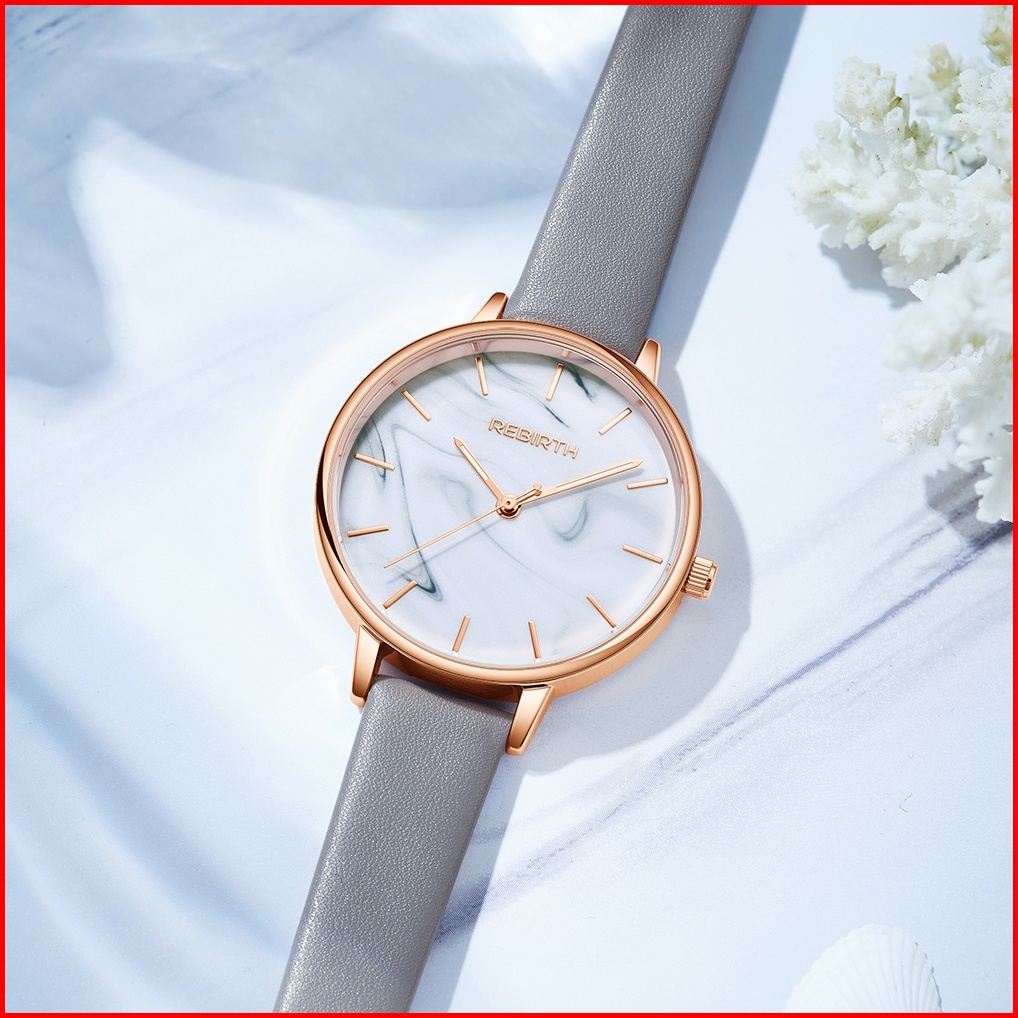 Rebirth Jam Tangan Wanita Anti Air Original Kuarsa Tali Kulit Korea Elegan Jam Tangan Cewek Original
