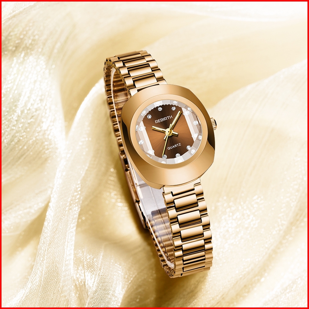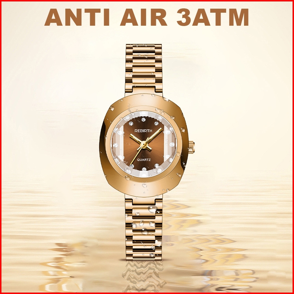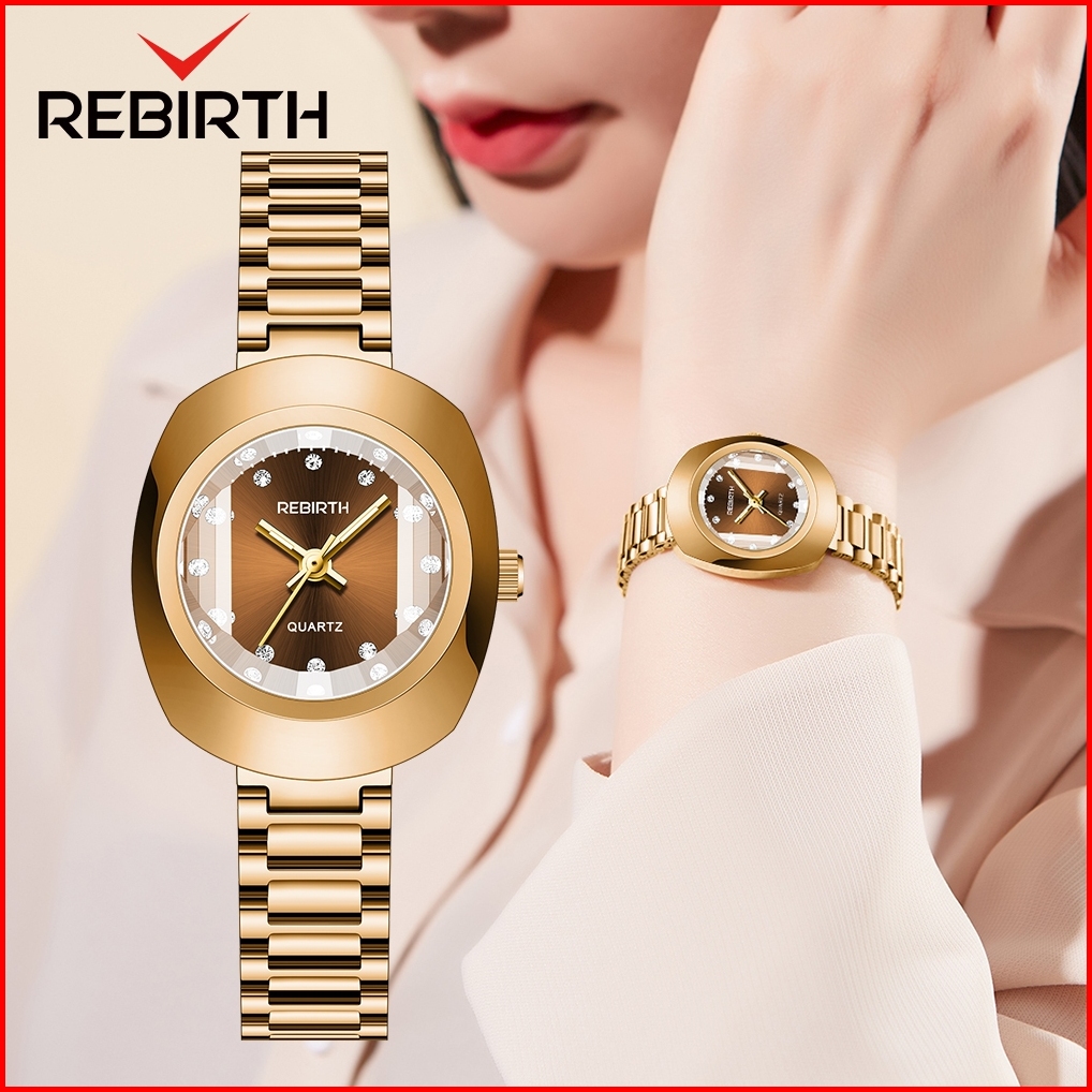 Rebirth Jam Tangan Wanita Anti Air Kemewahan Elegan Tali Stainless Steel Kuarsa Jam Tangan Cewek