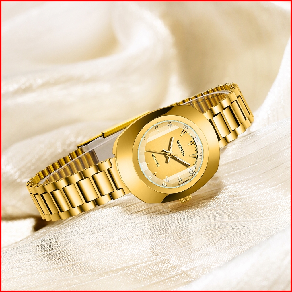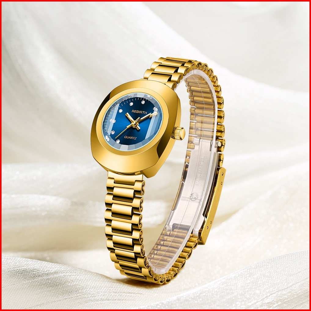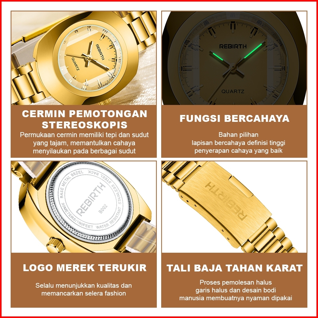 Rebirth Jam Tangan Wanita Anti Air Kemewahan Elegan Tali Stainless Steel Kuarsa Jam Tangan Cewek