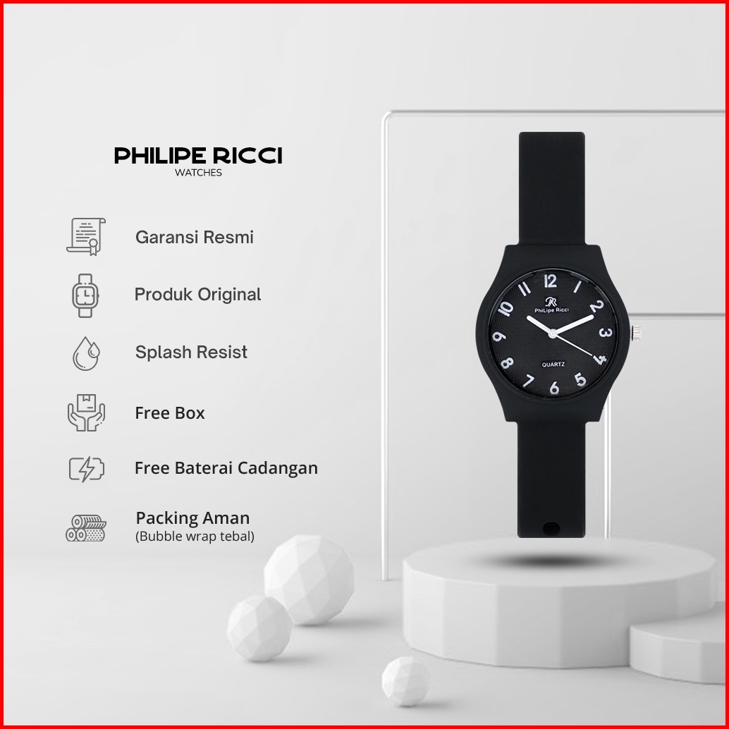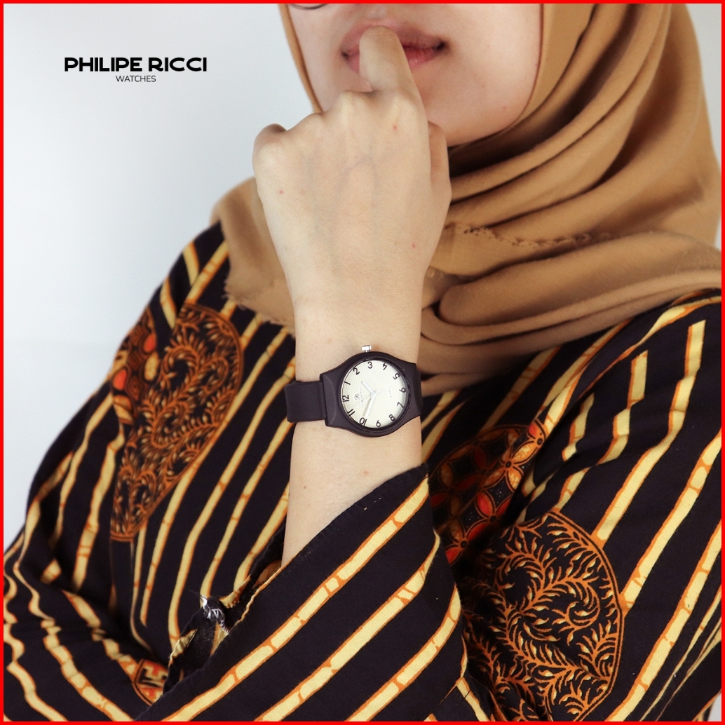 Philipe Ricci Jam Tangan Wanita Analog Diameter Bulat Model Simpel Strap Tali Karet Gaya Kekinian Terbaru 6232c Woman