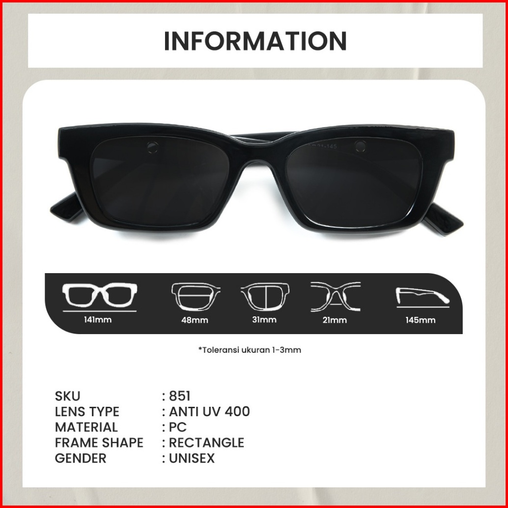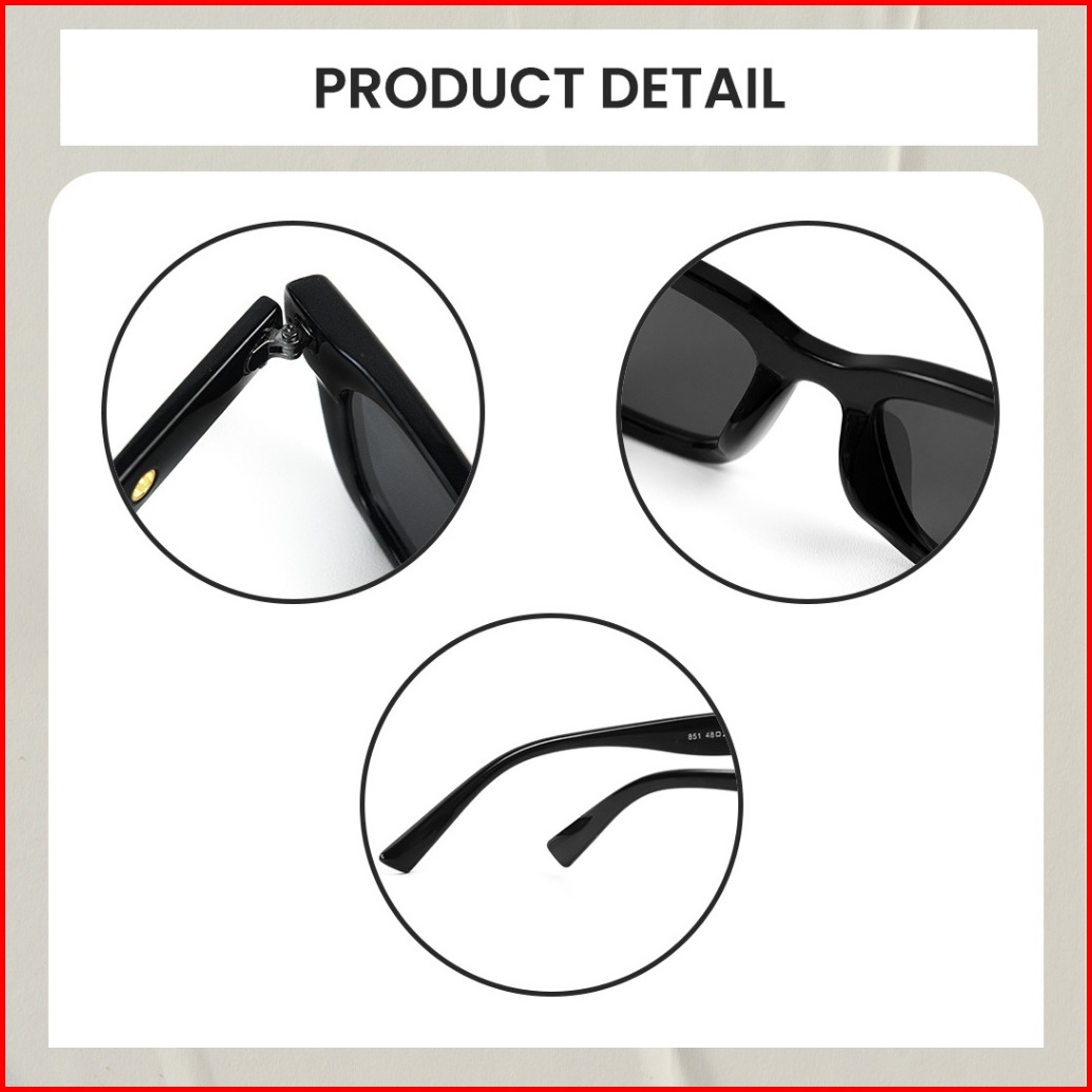 Berrybarton Kacamata Hitam Fashion Kotak Anti Uv400 Outdoor Sunglasses Plastik Pc Pria Wanita 851