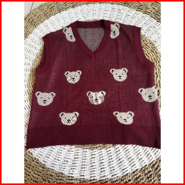 Termuraaah Vest Bear Knit Impor Premium Rompi Korea - Rompi Rajut7get-rajut Komputer